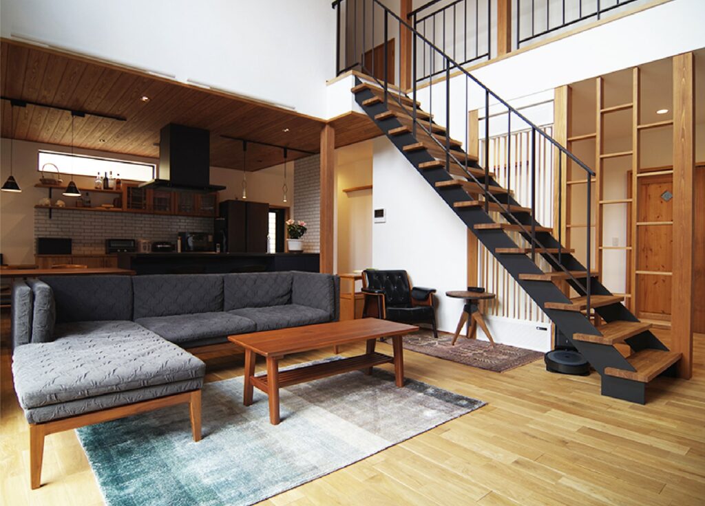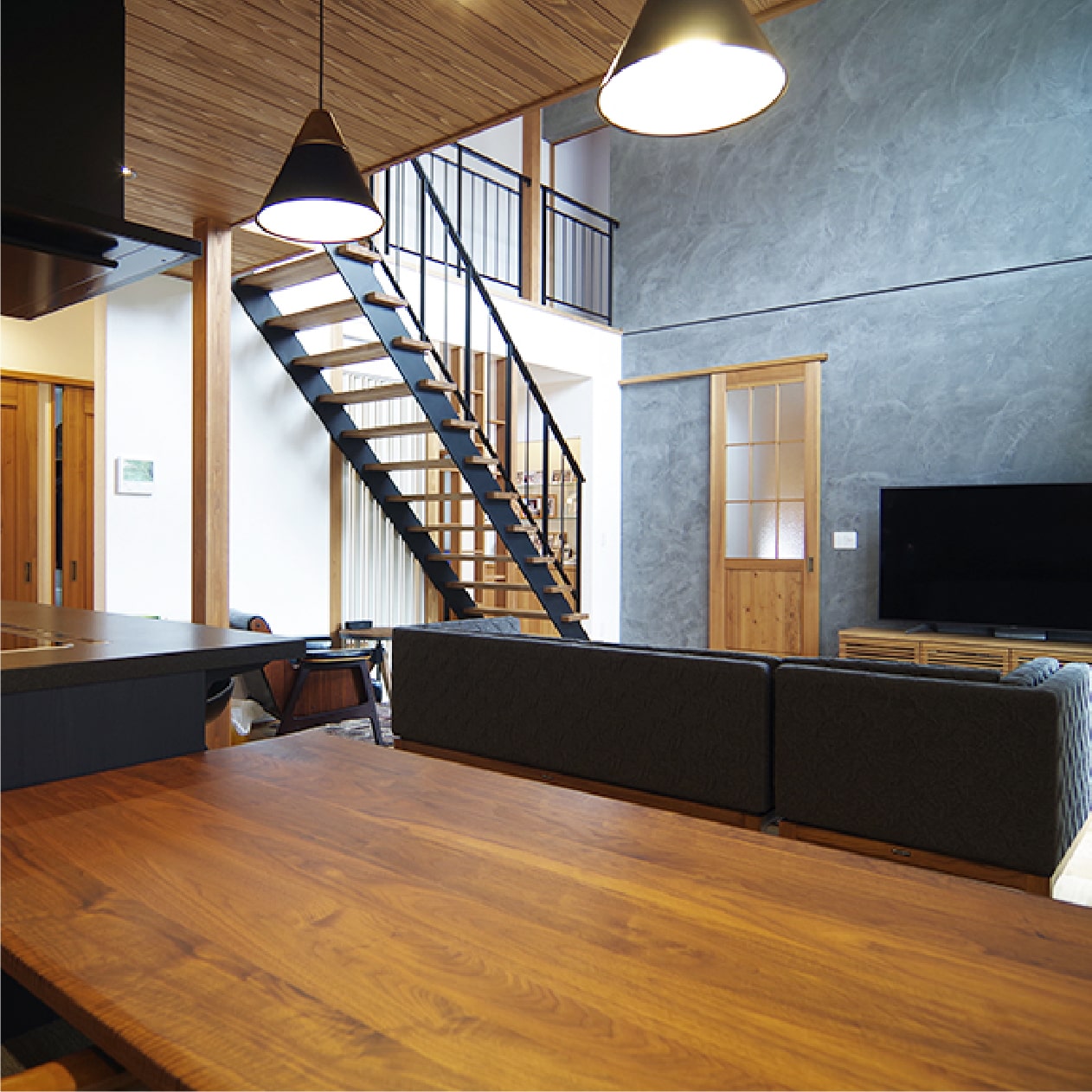 価格が分かる!施工事例異素材のコラボレーション、高級感のある吹き抜けのある家