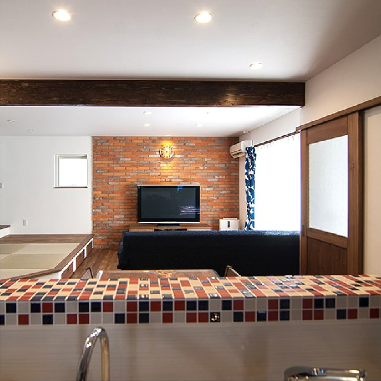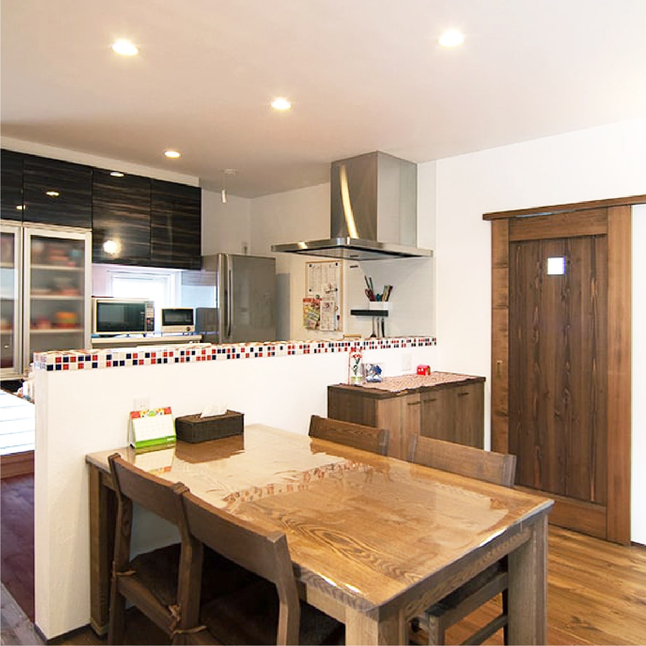 【内部】内装工事(漆喰・オガファーザー・パイン無垢・Be wood建具)・空調設備工事・タイル左官工事・電気工事・配管工事・設備設置工事・バス・トイレ(1F)・キッチン