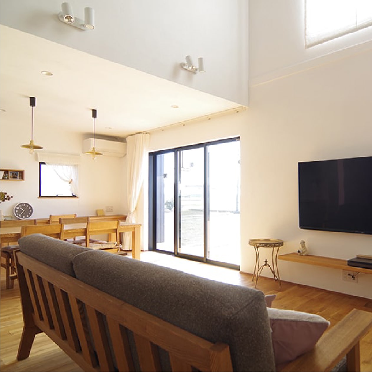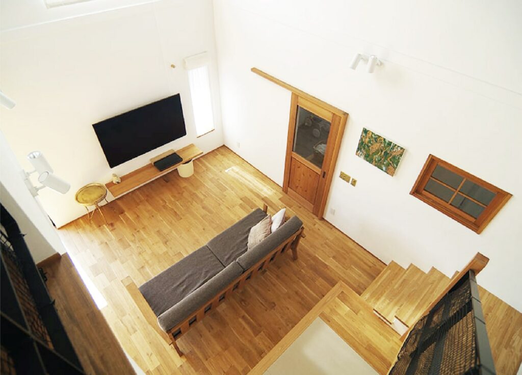 価格が分かる!施工事例大きな吹き抜けのある三角のガレージハウス