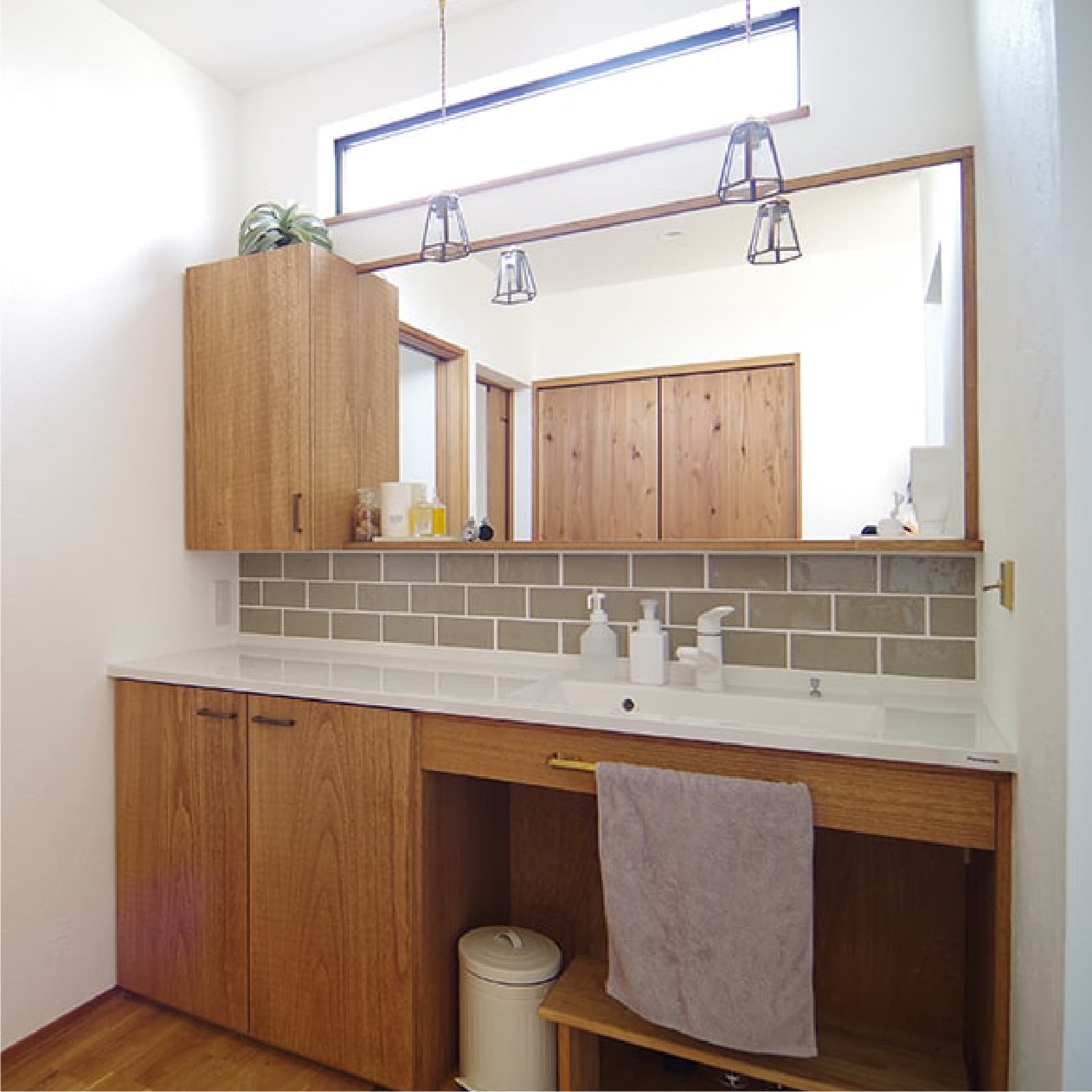 【内部】内装工事(漆喰・オガファーザー・パイン無垢・Be wood建具)・空調設備工事・タイル左官工事・電気工事・配管工事・設備設置工事・バス・トイレ(1F)・キッチン