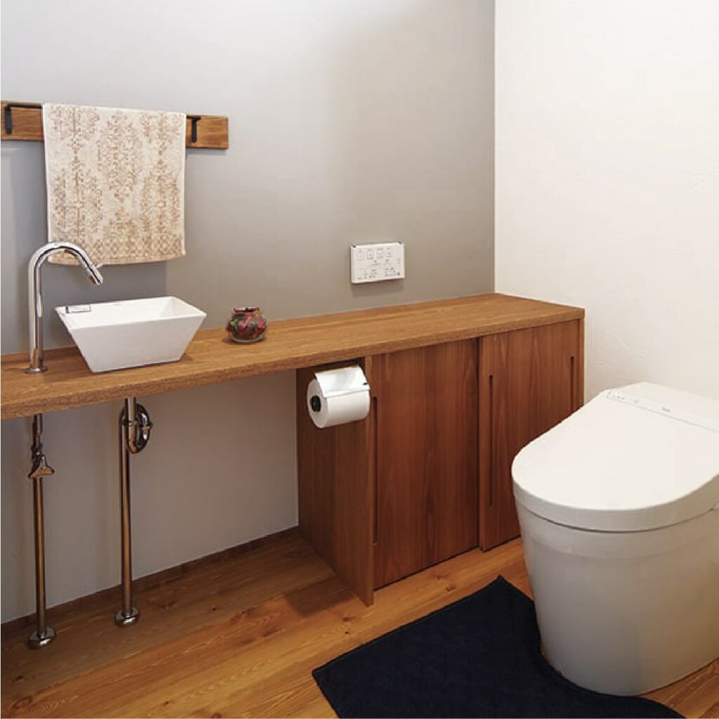 【内部】内装工事(漆喰・オガファーザー・ナラ無垢・Be wood建具)・空調設備工事・タイル左官工事・電気工事・配管工事・設備設置工事・バス・トイレ(1F、2F)・キッチン