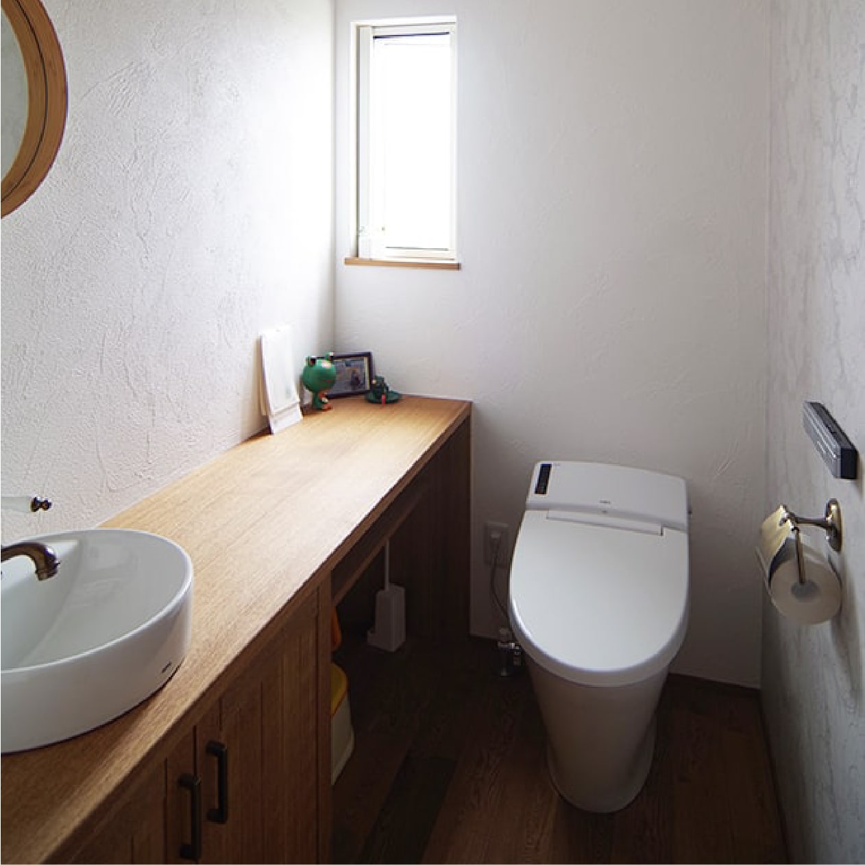 【内部】内装工事(漆喰・オガファーザー・ナラ無垢・Be wood建具)・空調設備工事・タイル左官工事・電気工事・配管工事・設備設置工事・バス・トイレ(1F、2F)・キッチン