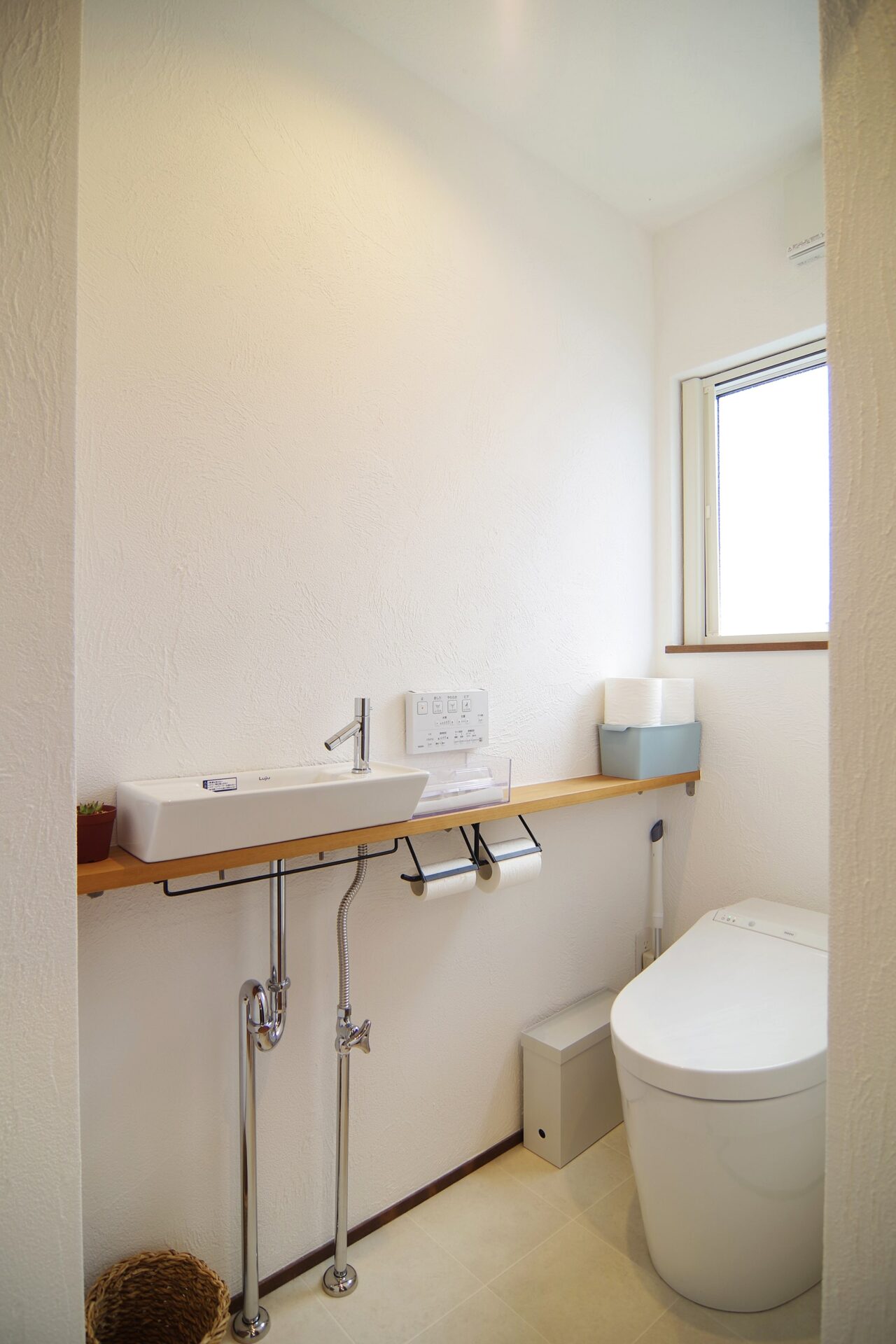 漆喰の壁で消臭効果も完璧!白い清潔感のあるトイレ。