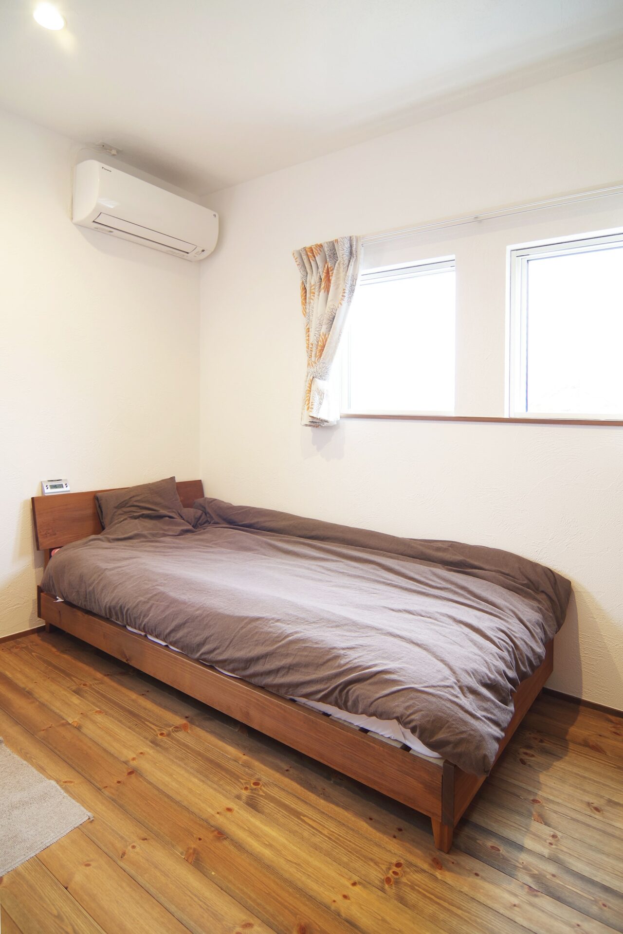 喘息のあるお子様のために無垢材と漆喰を使った子ども部屋。自然素材の家に住むようになってから喘息もおさまったそう^^ ベットも無垢ストーリーオリジナル造作家具です。