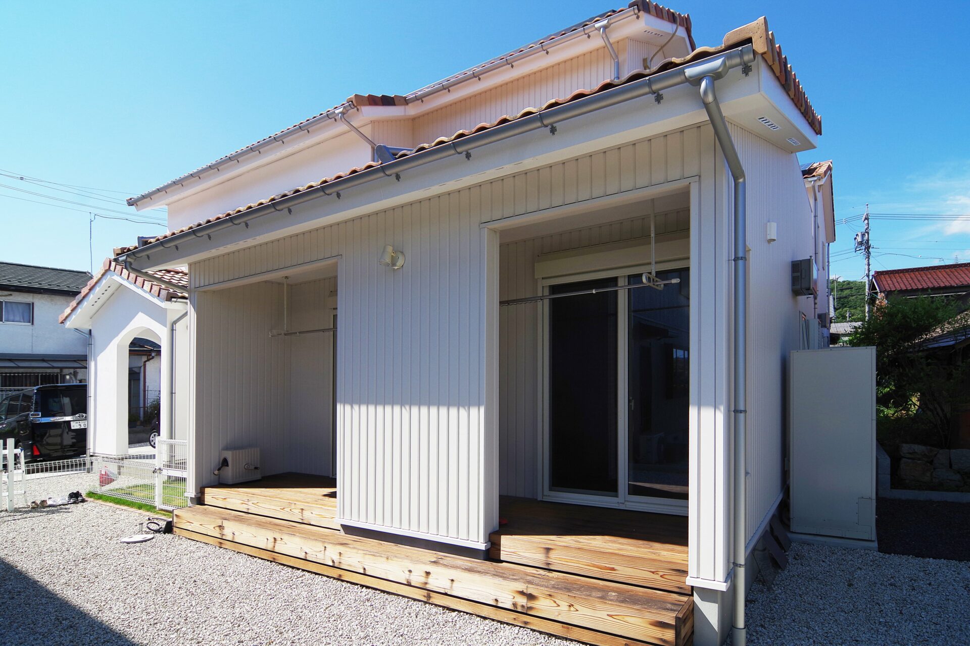 雨が降っても洗濯物が濡れないウッドデッキ。