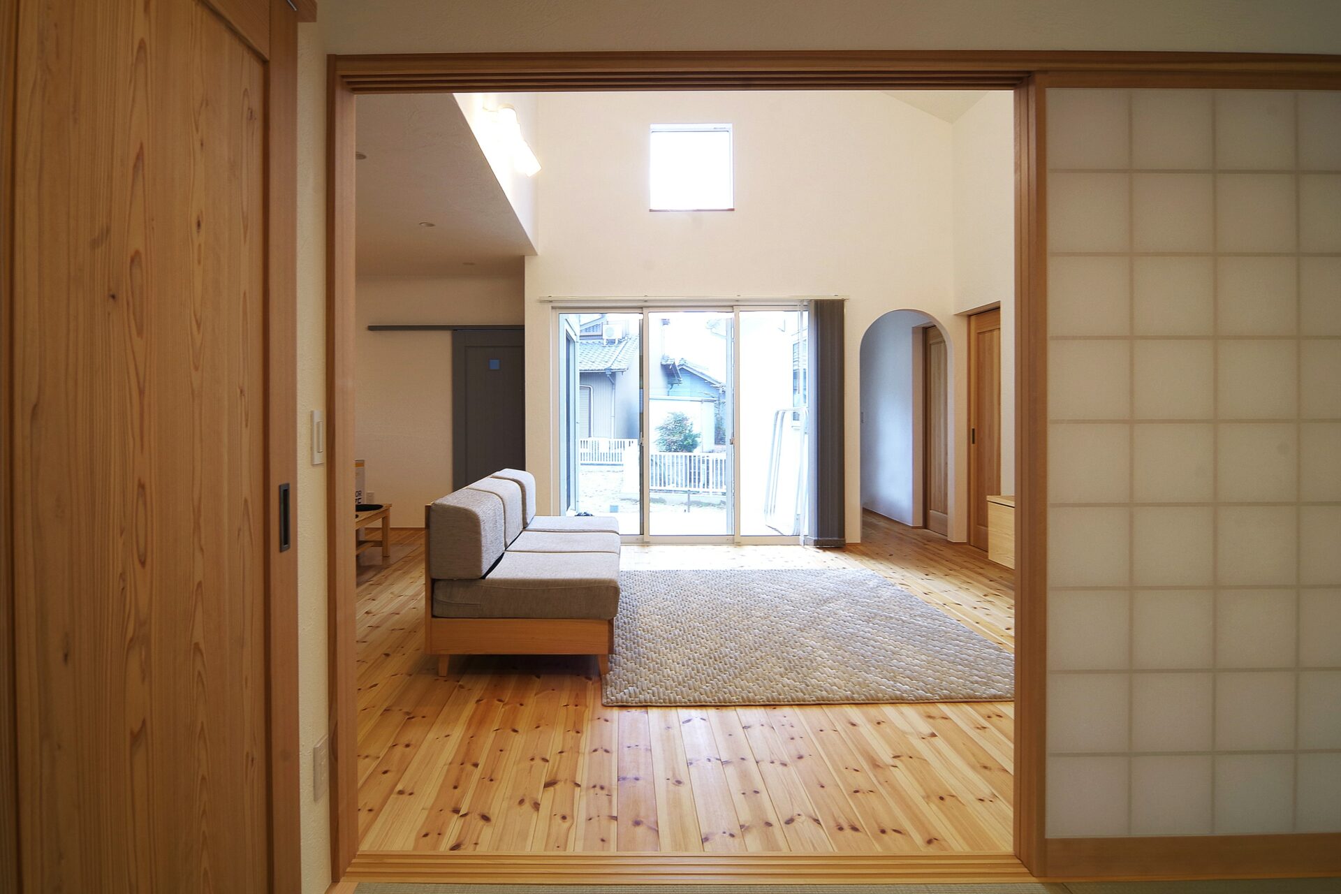 障子を開放すると、リビングと和室が一つながりの大空間に。和室は十分な広さがあり、客間としてはもちろん様々な用途で使えるのだそう。