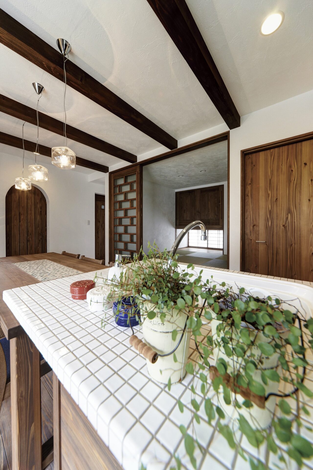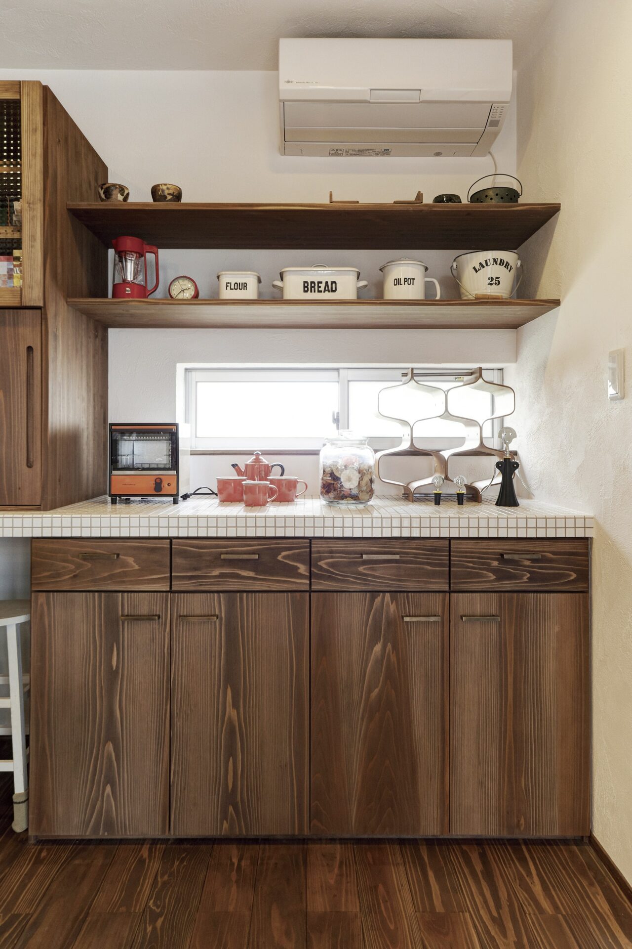 奥様の想いを再現した無垢の木目が美しいキッチンは、使い勝手を考えて作りました。