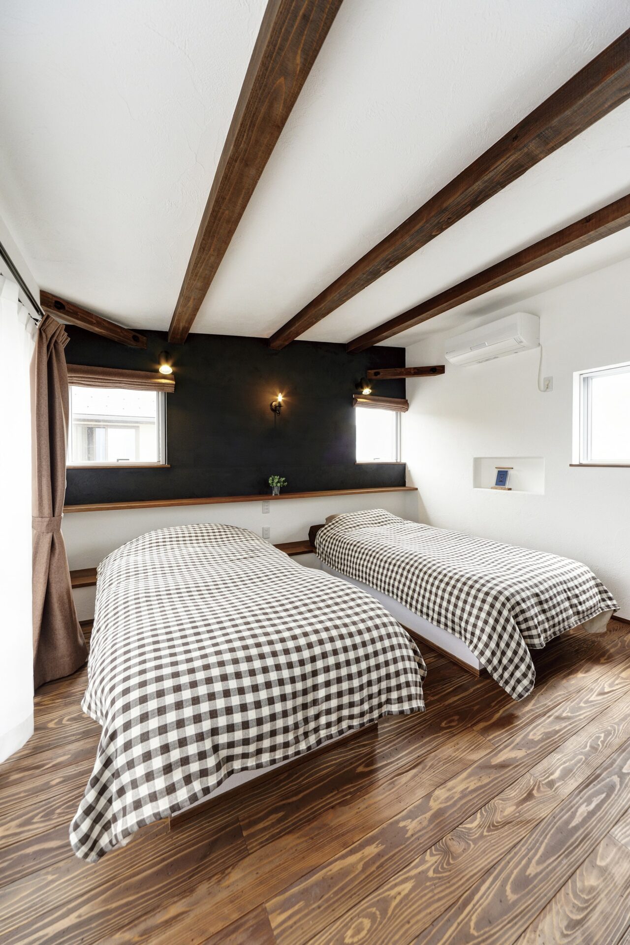 床にあえて傷をつけるエイジング加工が施され、年月を経たような風合いを演出しています。