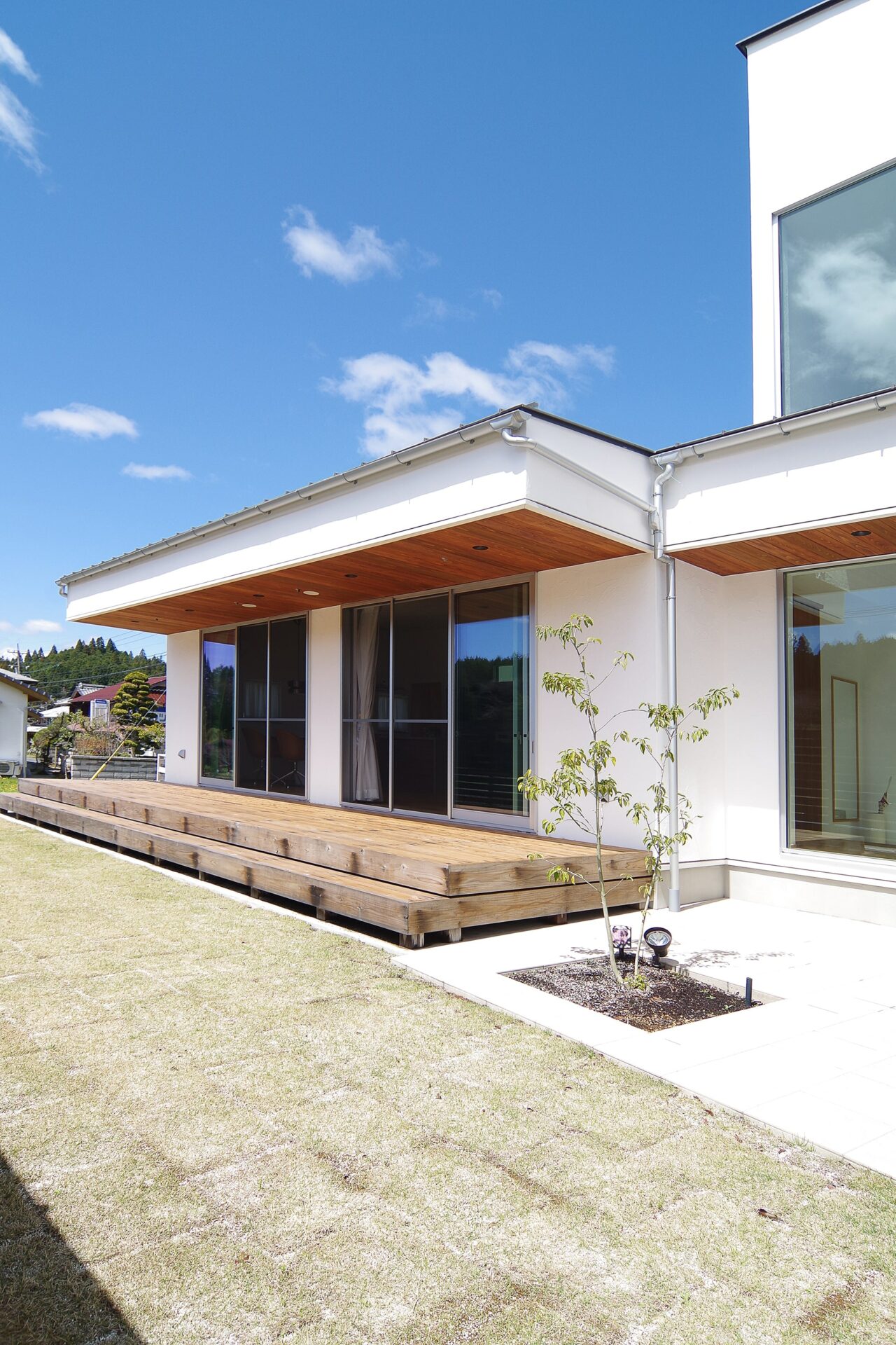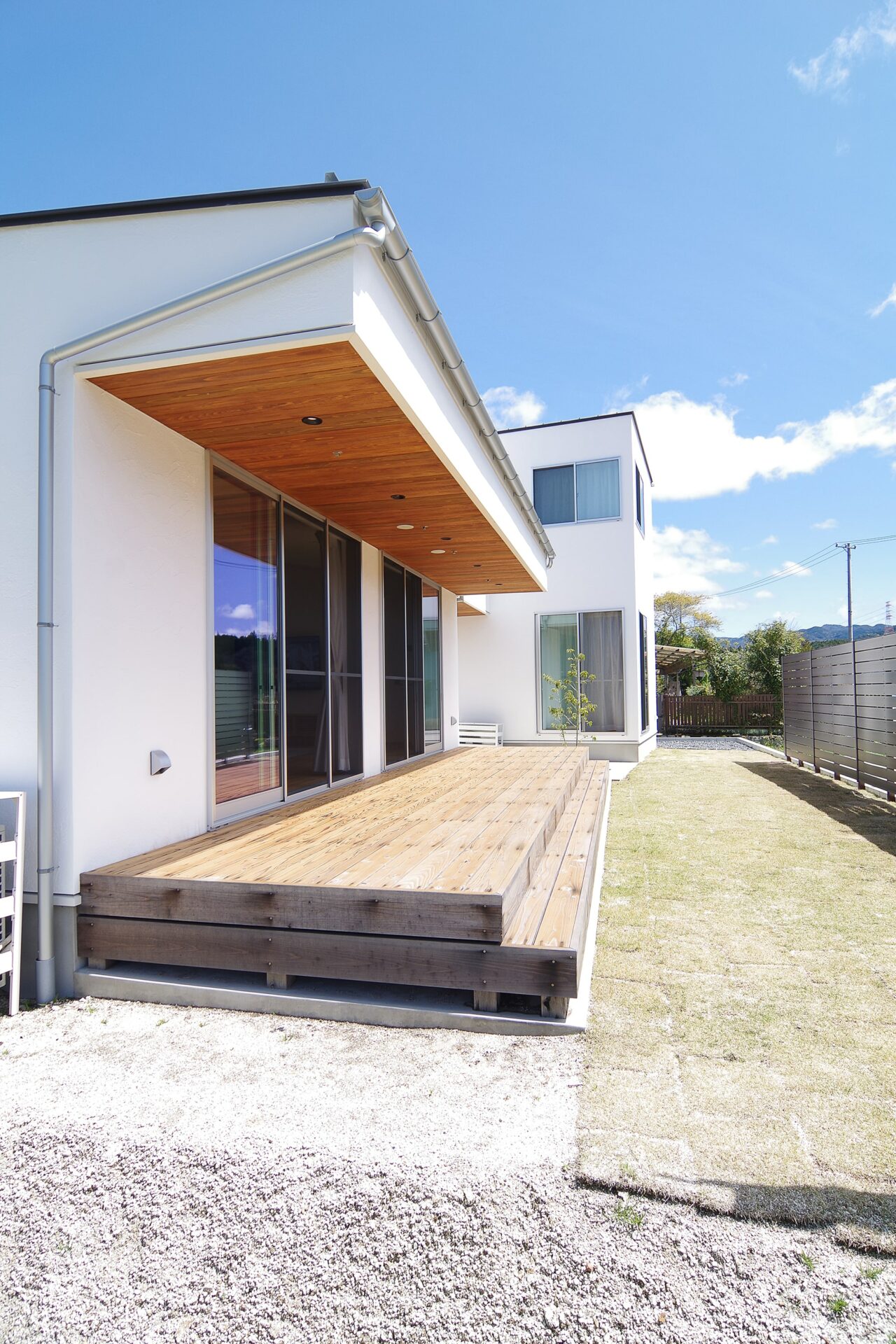 リビングの延長のような感覚で色んな用途に使える広いウッドデッキ。