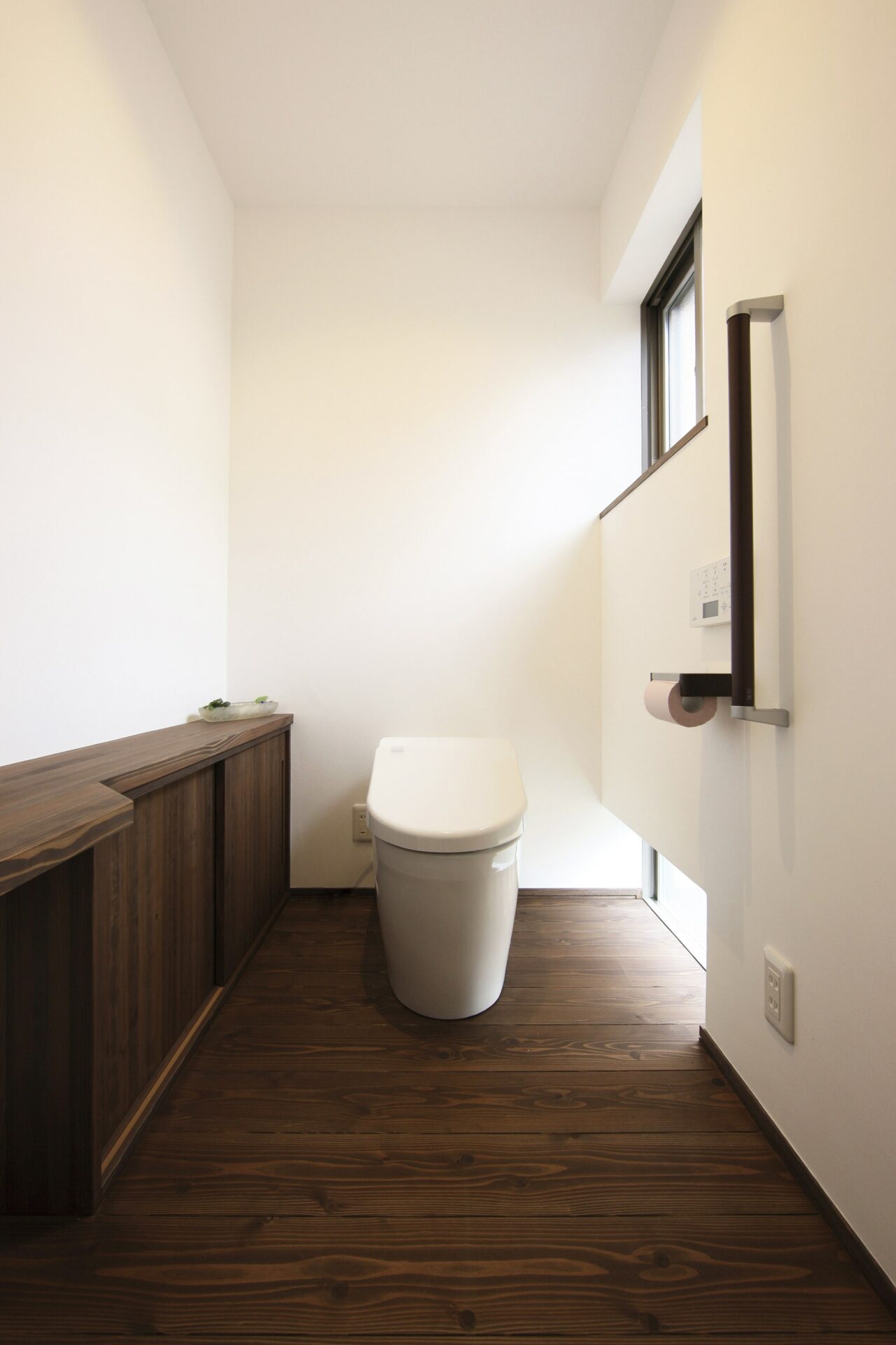 オリジナルの手洗いが落ち着いた雰囲気のトイレ。