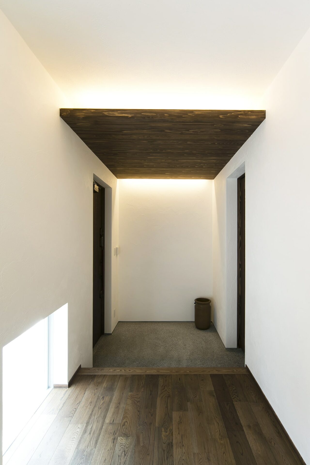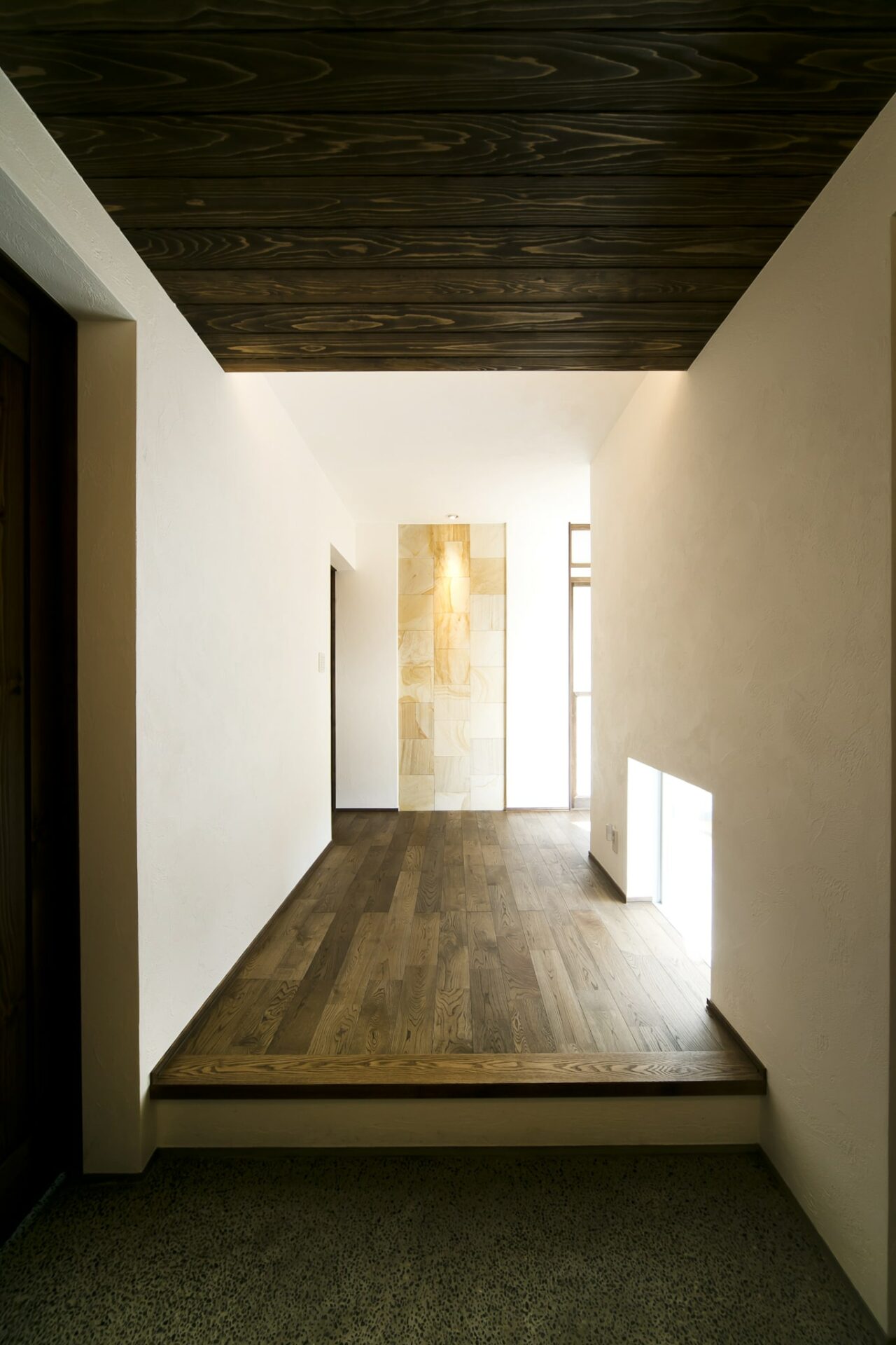 下駄箱さえないシンプルさにこだわった玄関ホール。正面にはパリマナン石が出迎えてくれます。