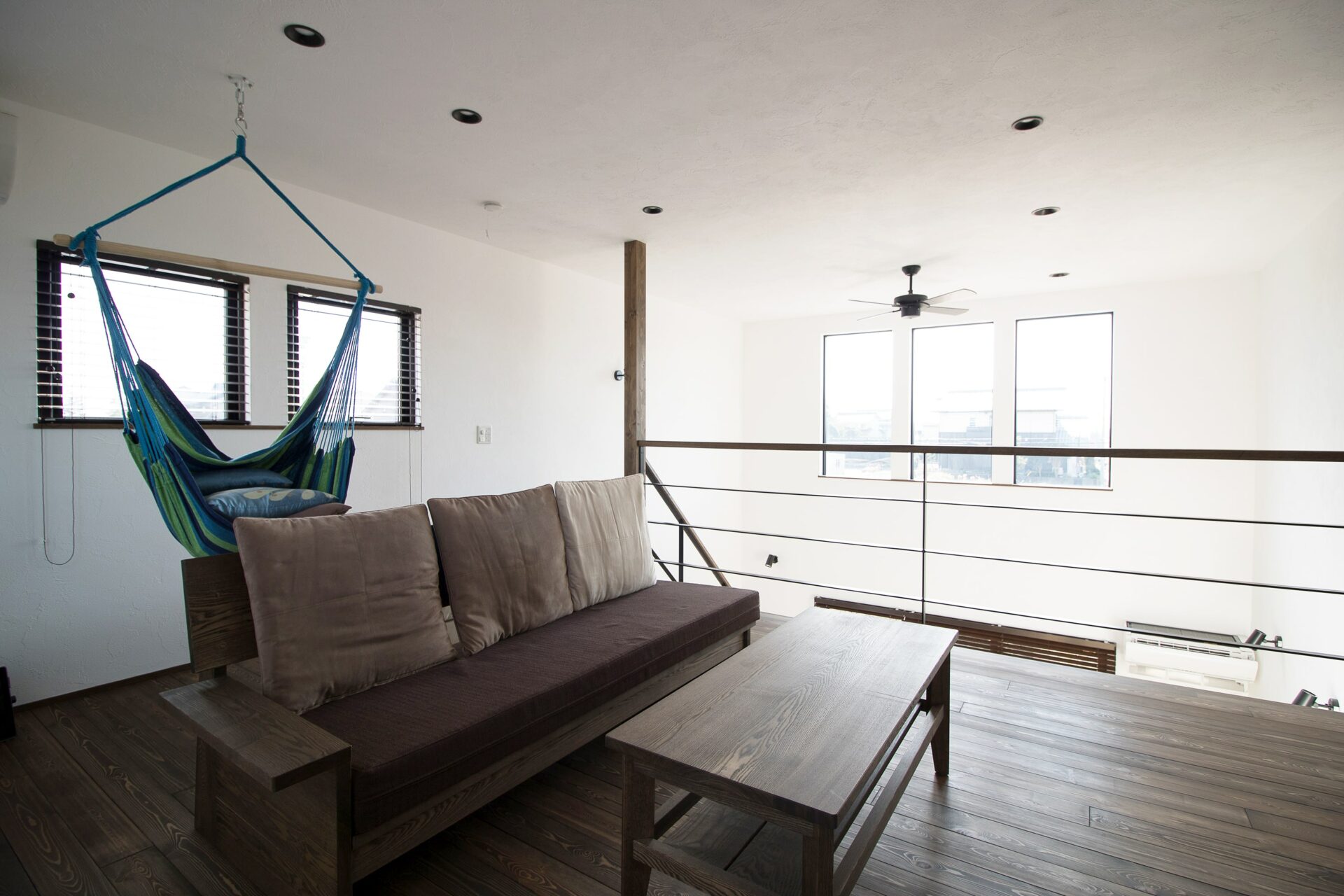 二階には吹抜けからリビングを覗けるファミリースペースが、キッチンからもリビングが見えて家族との距離が近くなります。「魚を焼いても匂いがこもらないなど漆喰の消臭力にも感心します。」と満足そうに話してくれました。