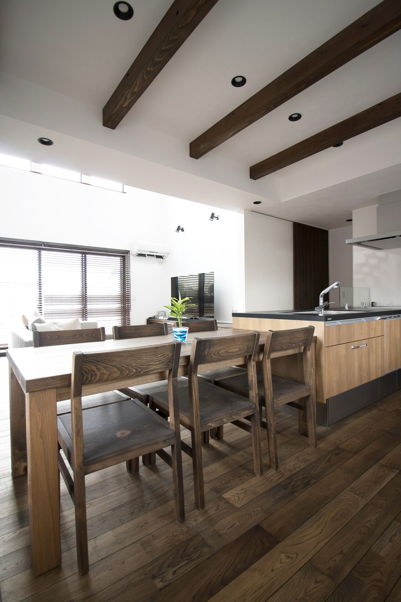 ビターな色の無垢材を中心にシックでシンプルな無垢家具となりました。