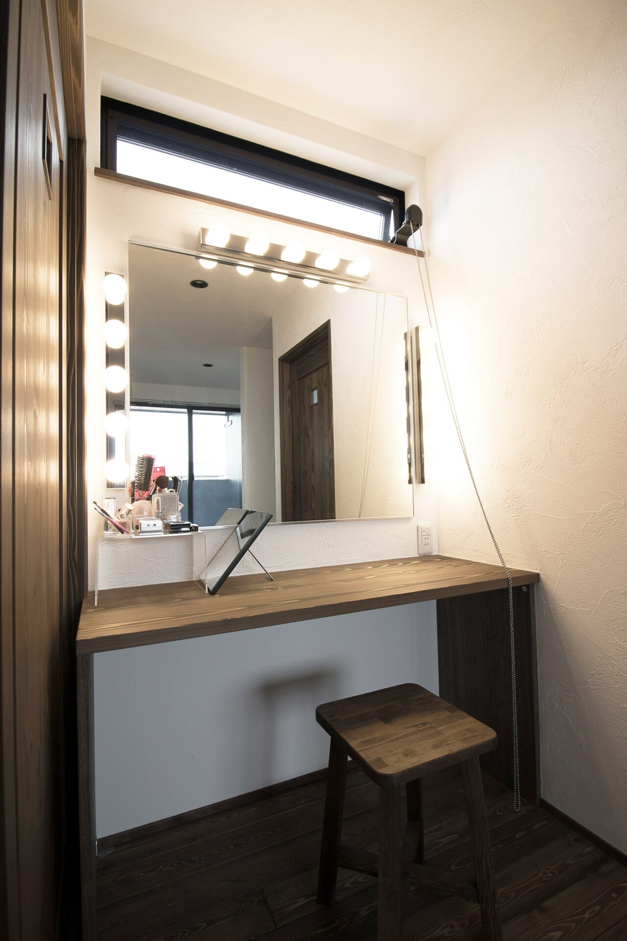 化粧台は大きな鏡と明るい電気が素敵な一品です。