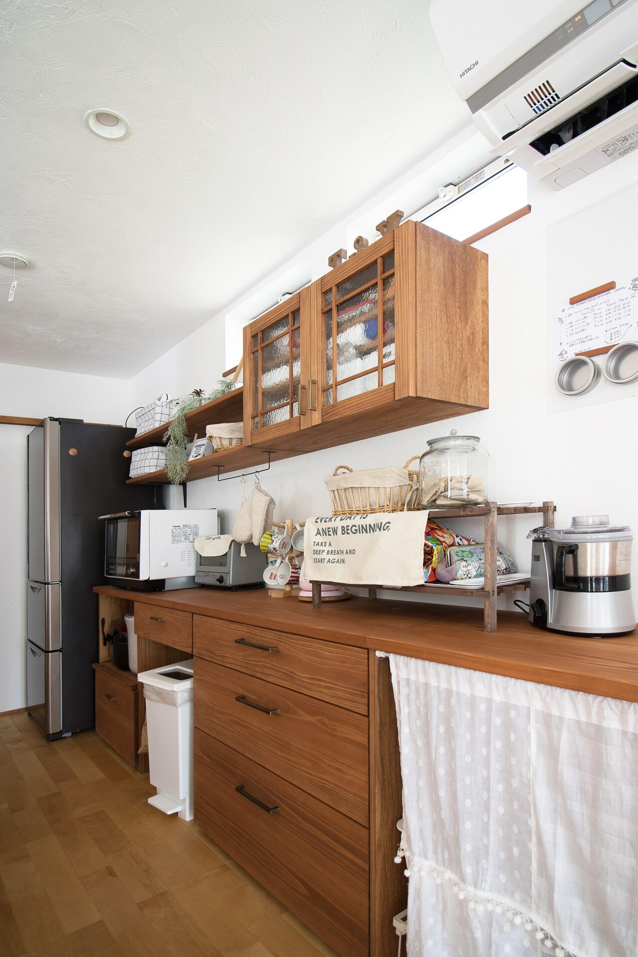 こだわりの一つはキッチンカウンターのニッチ。お気に入りの本や雑誌をカフェのように飾っておけるスペースを設けました。