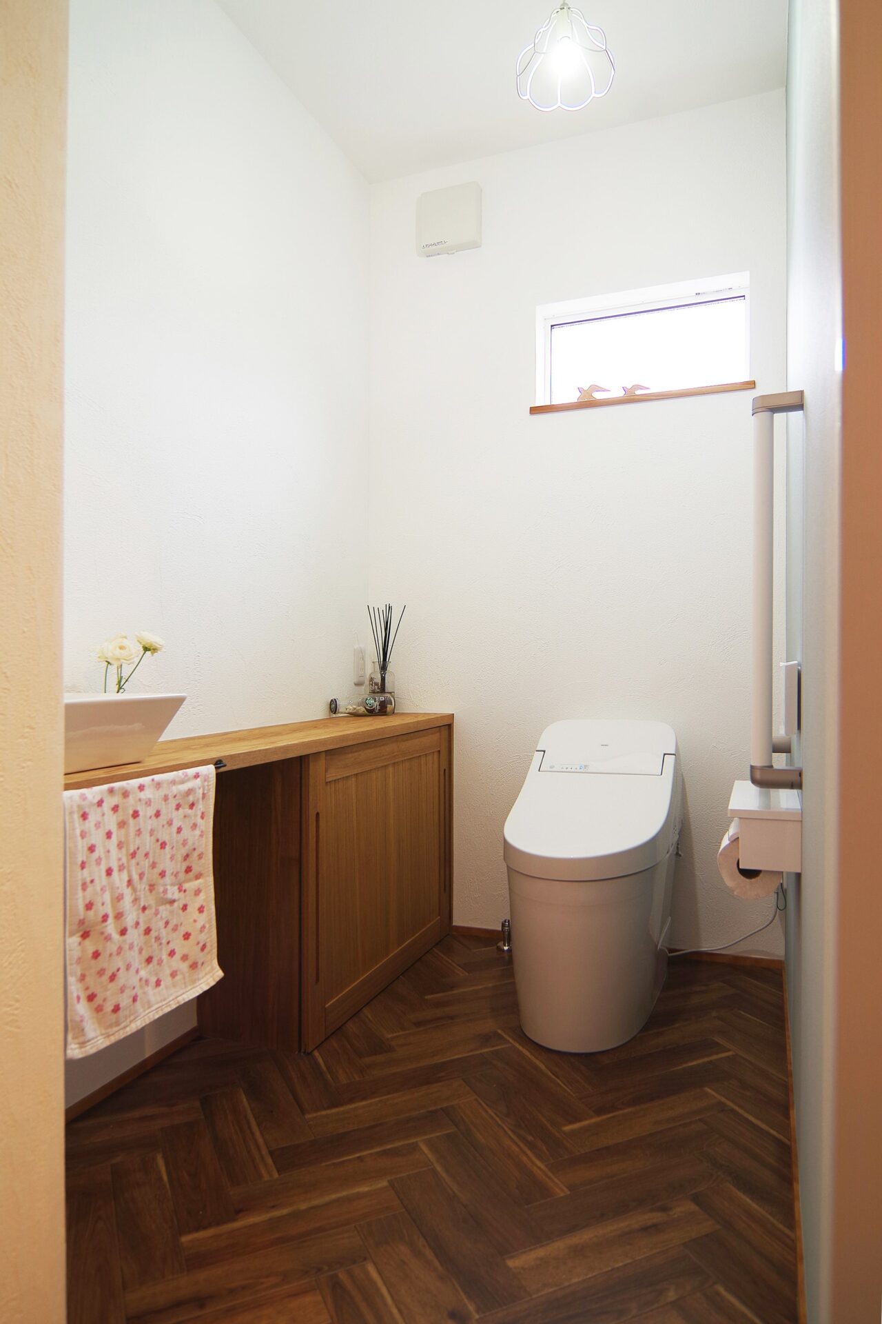 トイレの壁紙に色や柄を使うと少し特別な空間に。