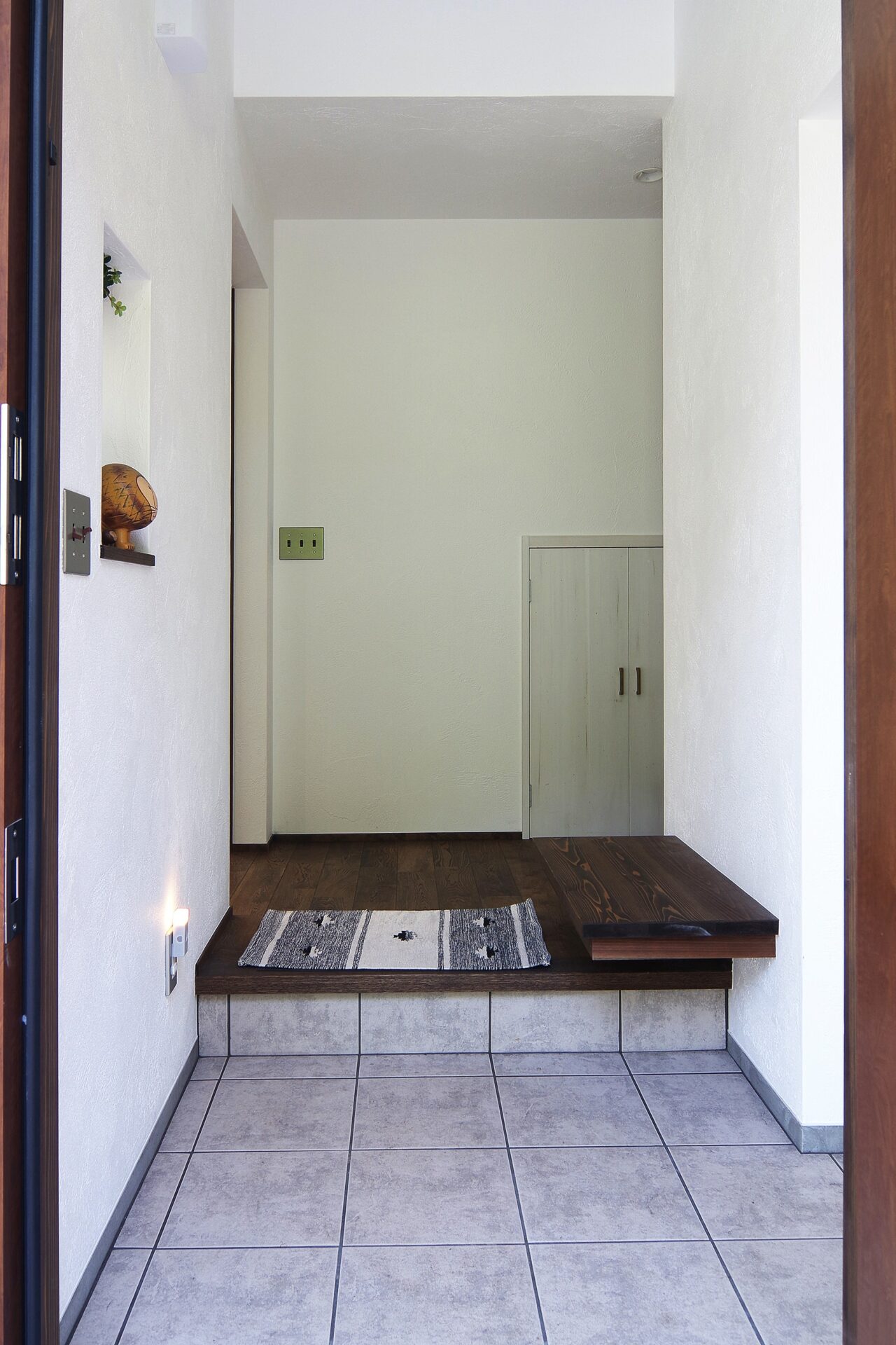 建具は自社家具工房で作られた、無垢材のオリジナル建具です。塗料を加工しオールドな雰囲気に仕上げました。