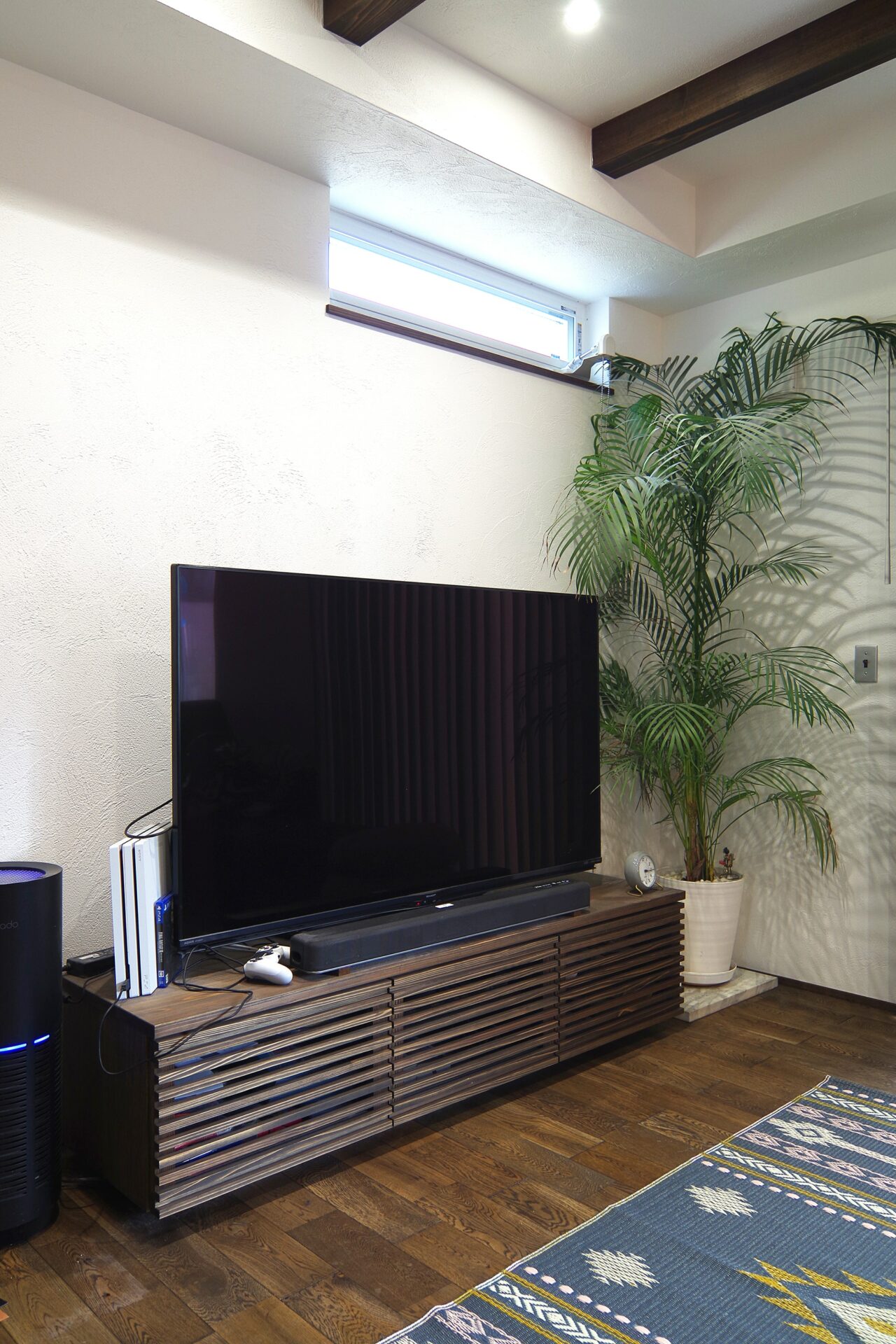 テレビボードはシンプルに、強く主張することなくお部屋によく馴染みます。