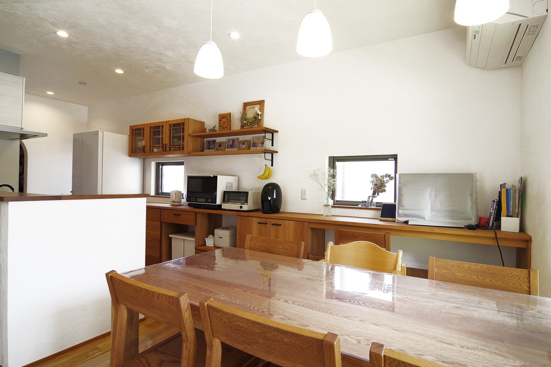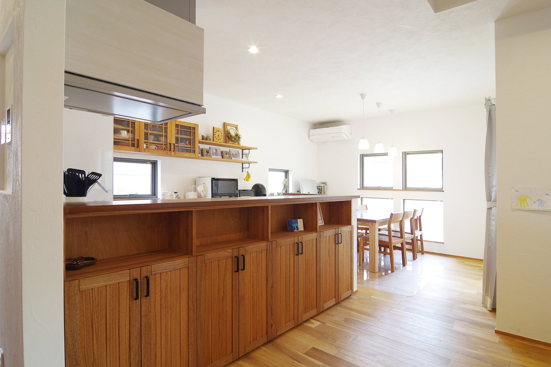 自社家具工房で作られたキッチン前収納。収納をたくさん設けてすっきりとしたお住まいに。