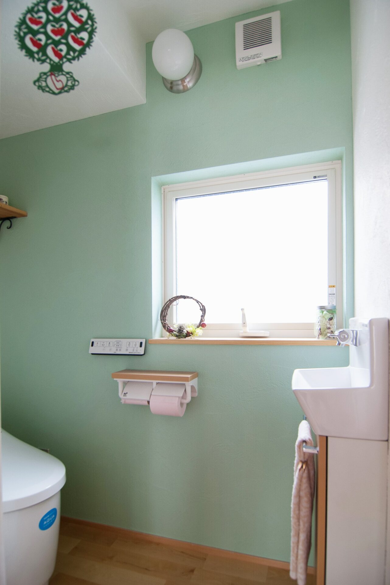 アクセントクロスを用いることで、遊び心あふれるトイレ空間に。