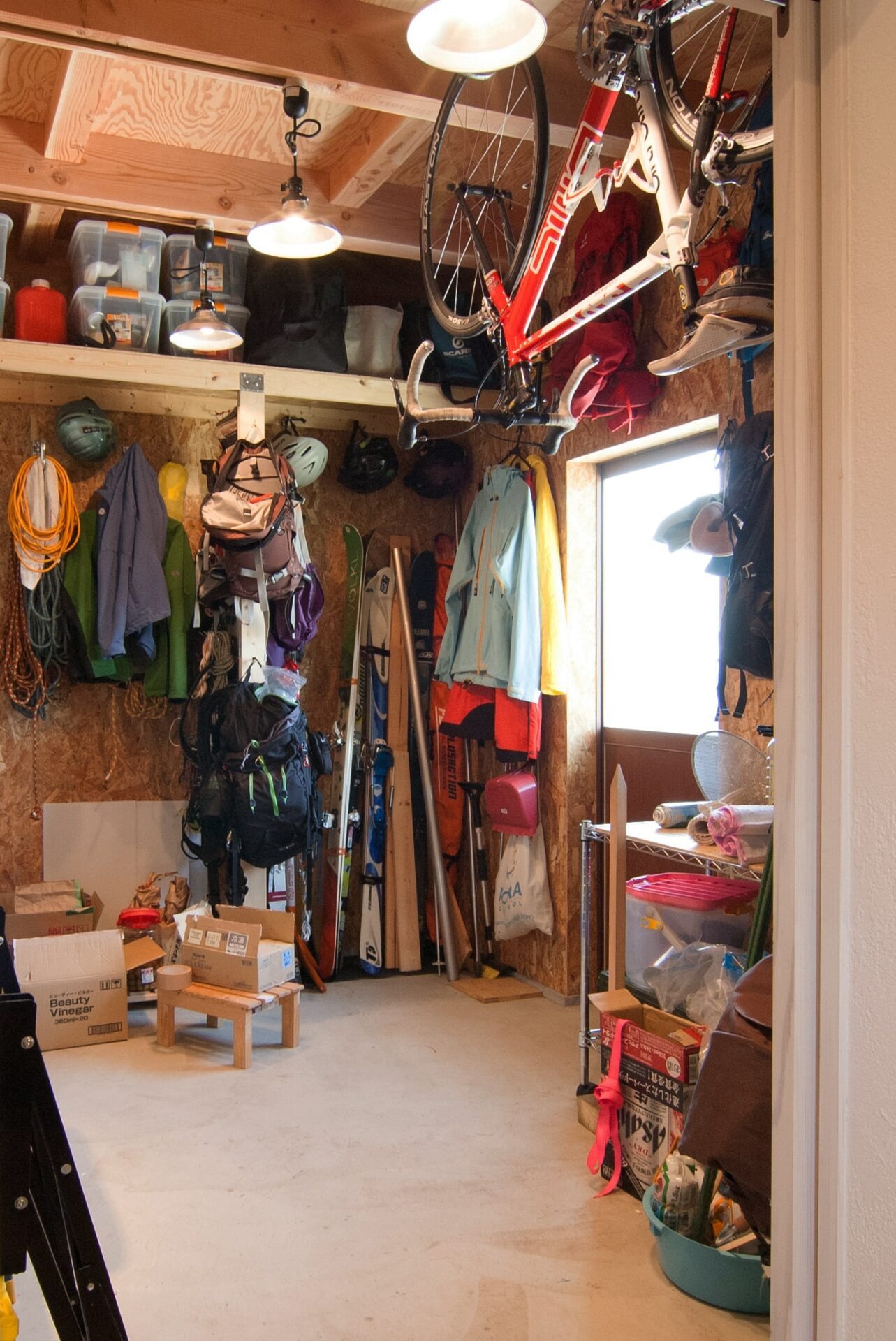 見学会で男性の目を釘付けにしたのがガレージ風の土間。仕上がり過ぎていないラフな空間は、ロードバイクを天井に保管できるようDIYするなど、自分好みでカスタマイズしやすいのが特徴。