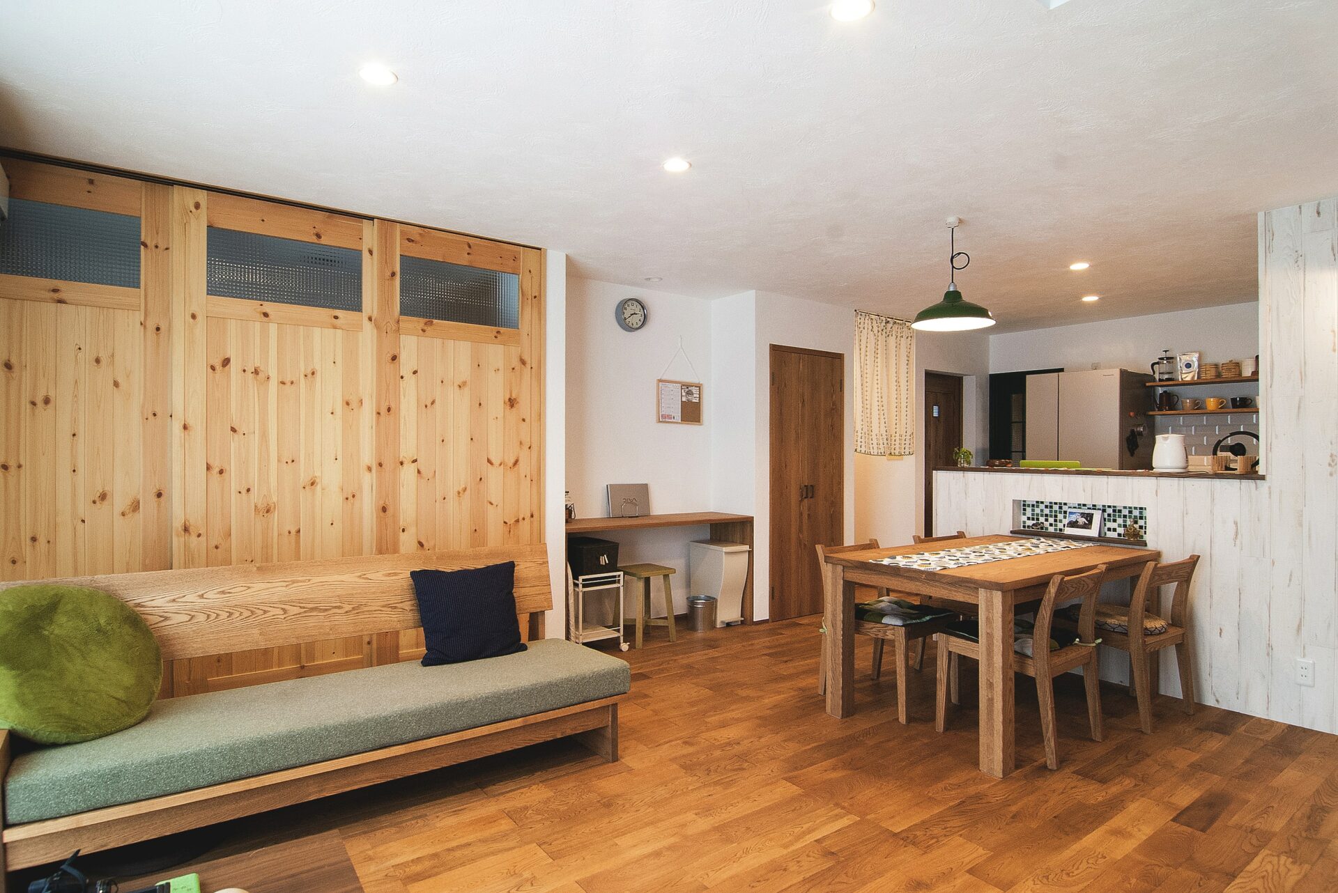 登山にスキー・ロードバイクが大好きな夫とサックスが趣味の妻。 そんな岐阜市のT様夫妻が互いの趣味を愉しめるようにという願いが実現した、ヴィンテージな風合いの開放的な住まいです。 「お互い好きな事ができる家」をテーマに作業台のある秘密基地のような土間や、防音を強化した演奏室、ボルダリングのある子ども部屋など、T様邸は楽しさいっぱい。