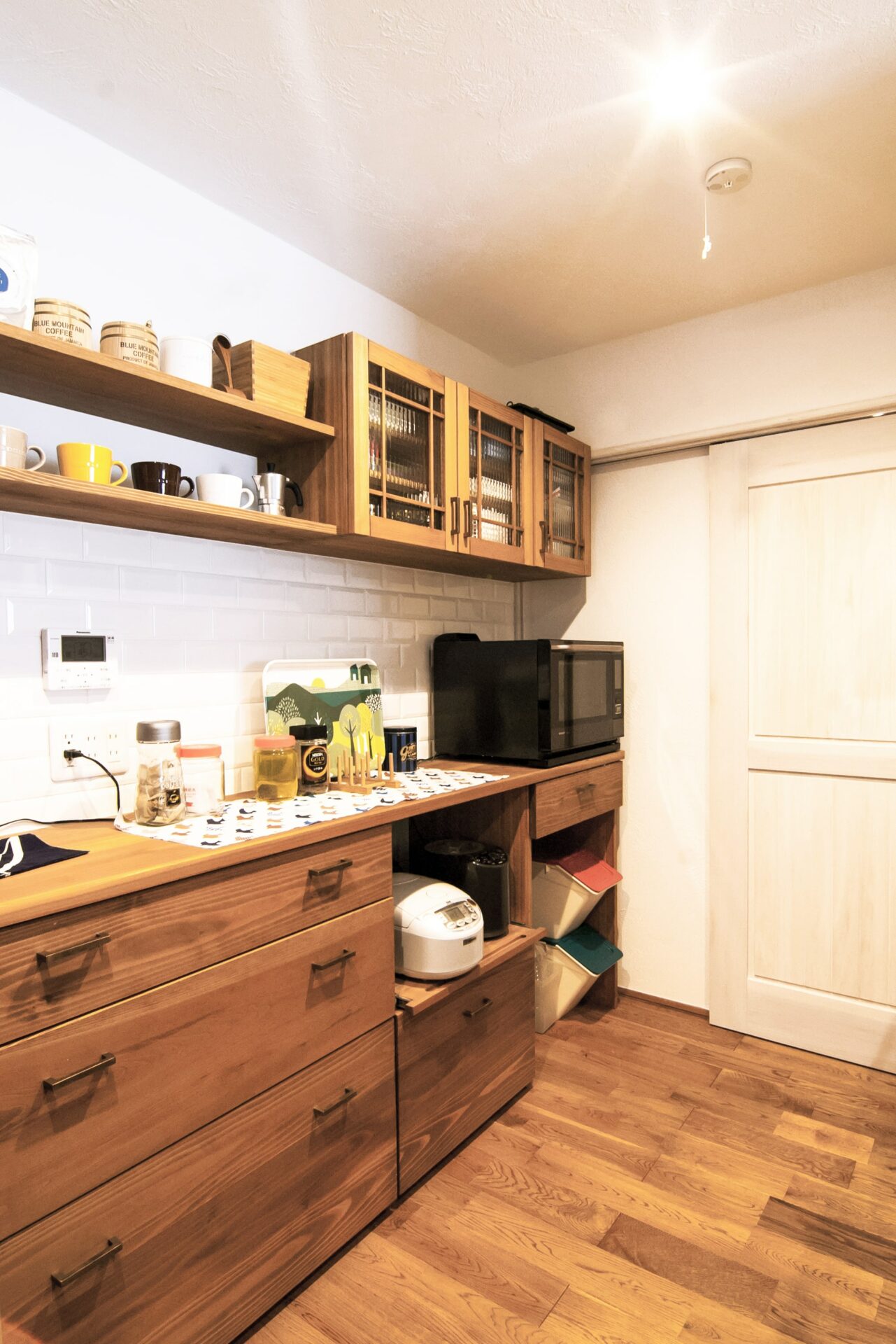 食器棚は「お皿を立てて片づけられるように」等、細部まで意見が反映されており、使い勝手は抜群。身長に合わせ高さが決められているので、「自然体で家事ができる」と好評です。