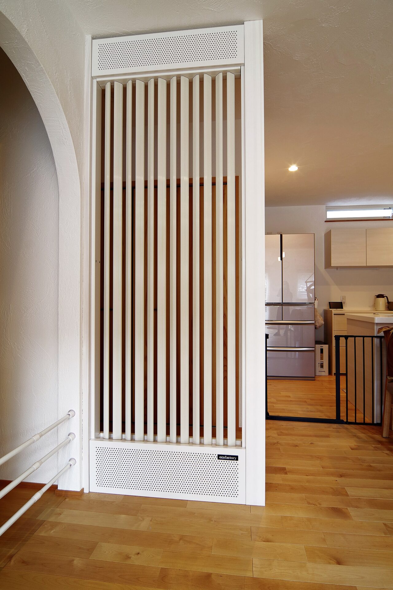 エアコンと連動された冷暖房パネルは、触ると冷房時はひんやり、暖房時はあたたくなり、その輻射熱効果でお部屋の扉を開けておけば全館冷暖房ができるという優れものです。エアコンの余った熱を再利用するので気になる電気代もエアコンのみの使用よりも安く!? お部屋に馴染むデザインも魅力です。
