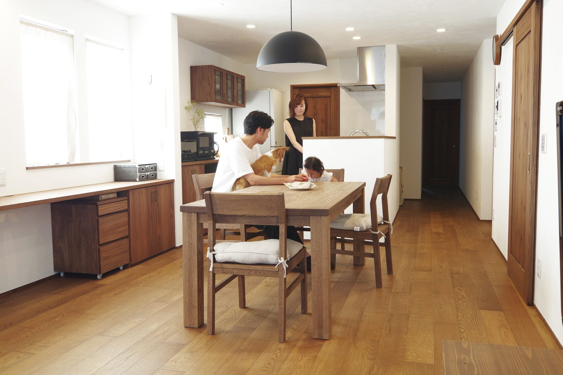 「無垢材の家具や建具は、ナチュラルな風合いを飽きずに楽しめて、お手入れも簡単。驚くほどローコストで、カフェスタイルの暮らしを楽しんでいます」と話して下さいました。
