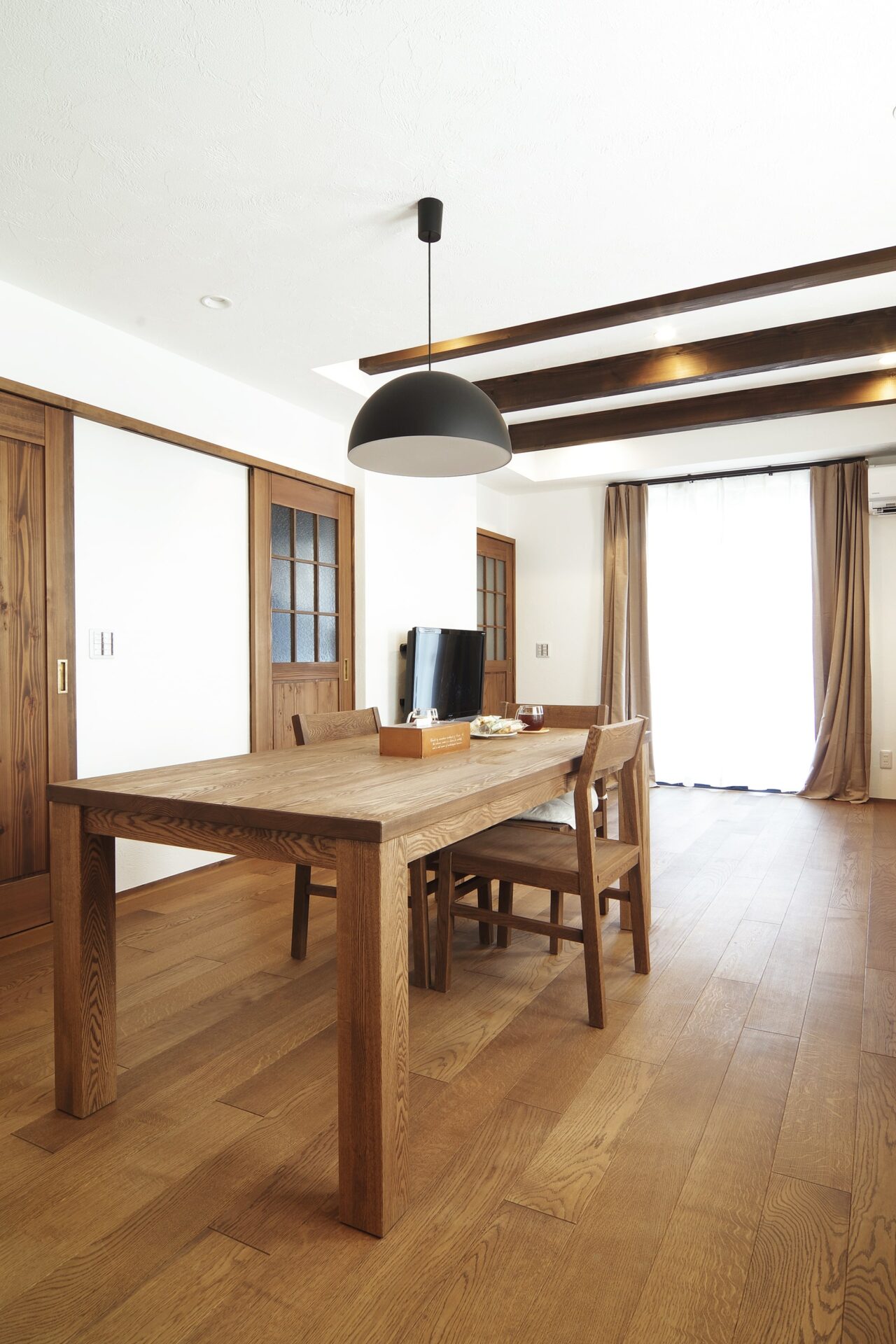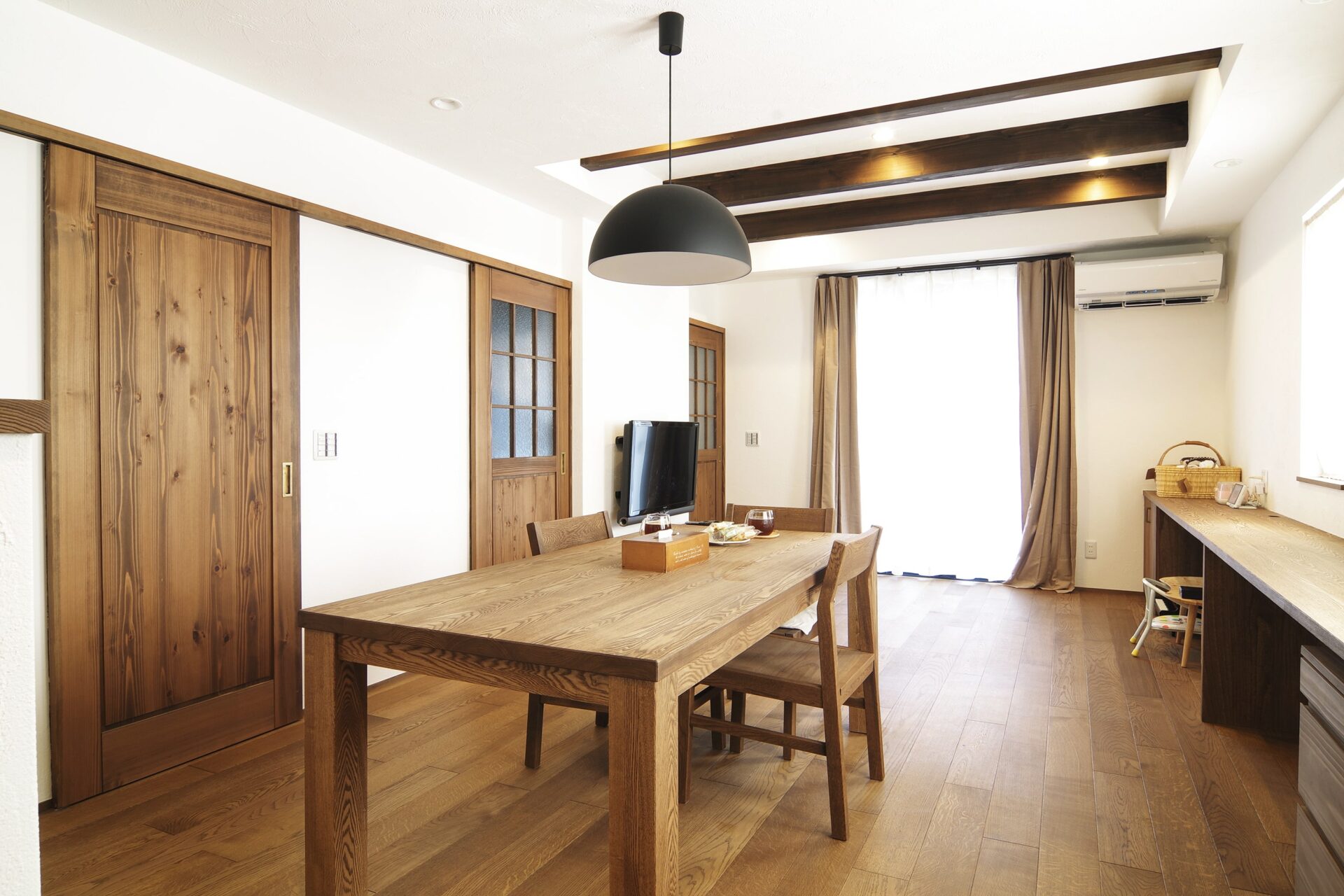 無垢材そのままの色合いを残した温かみのある家具や建具。 T様からは「家具の統一感が素敵。今後も家具はお願いしたい」と話してくれました。