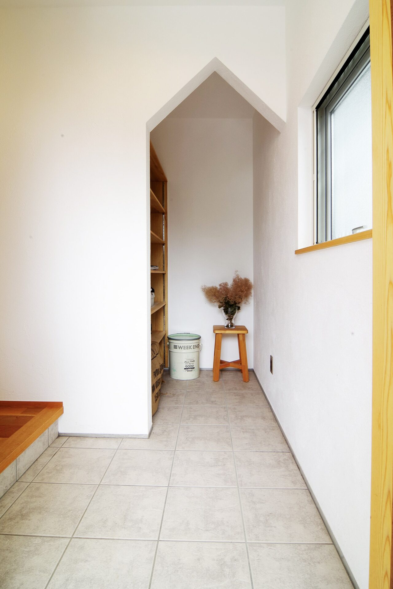 玄関収納の開口は三角型に。注文住宅だから細部までこだわることができます。