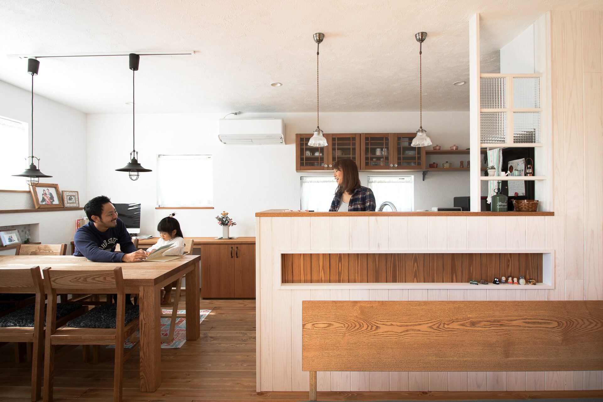 無垢材や漆喰の自然素材を得意とする工務店を探していたというW様夫妻。各務原展示場へ訪れた時、自然素材の雰囲気に一目惚れしたそうです。