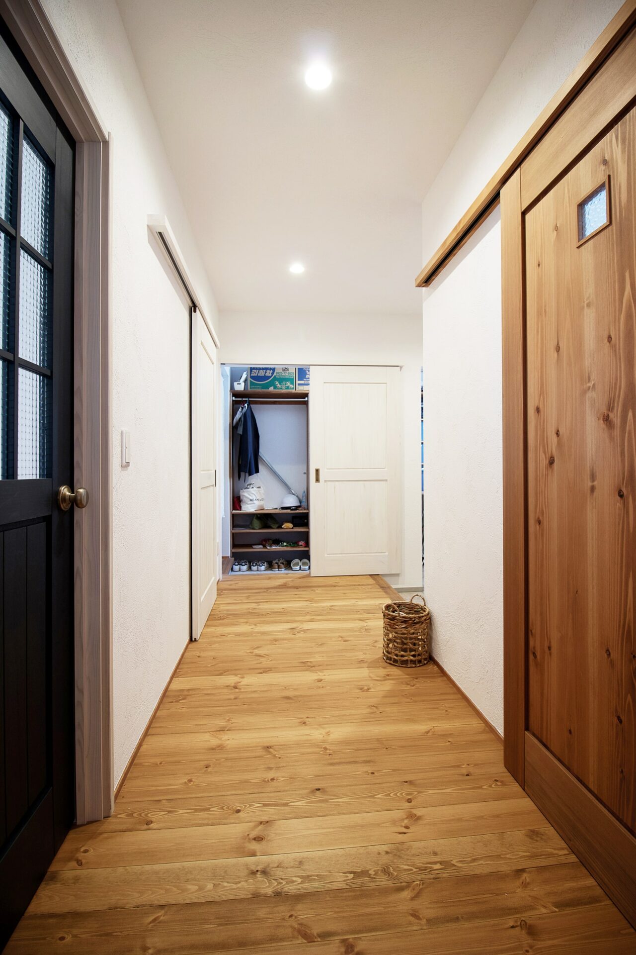 洗面室からウッドデッキに出られ、そこで洗濯物を干せる動線だったり、買い物帰りの荷物を直接パントリーやキッチンまで運べる動線だったり、注文住宅を建てる工務店だからこそできる家事ラクな暮らしを実現。