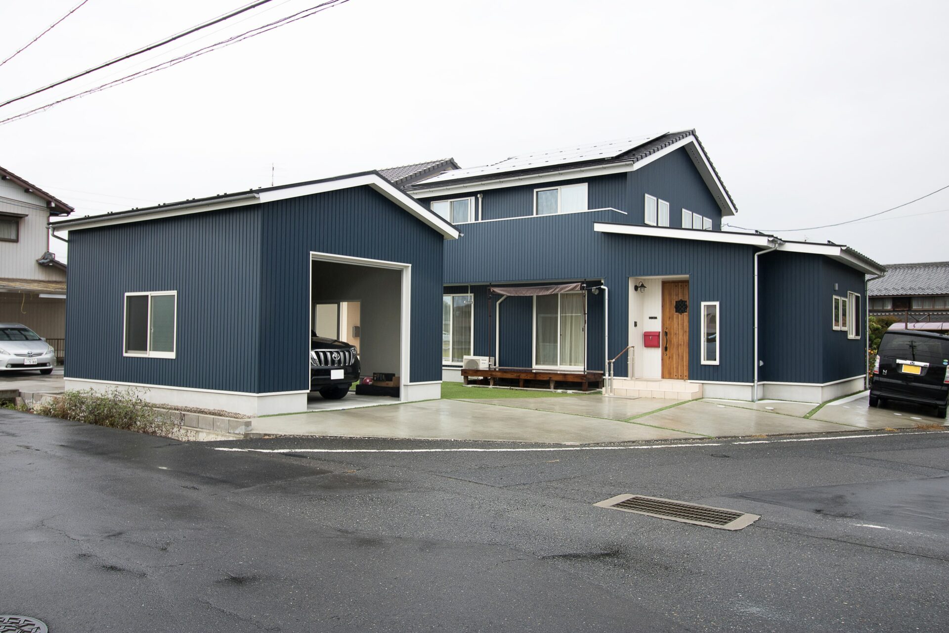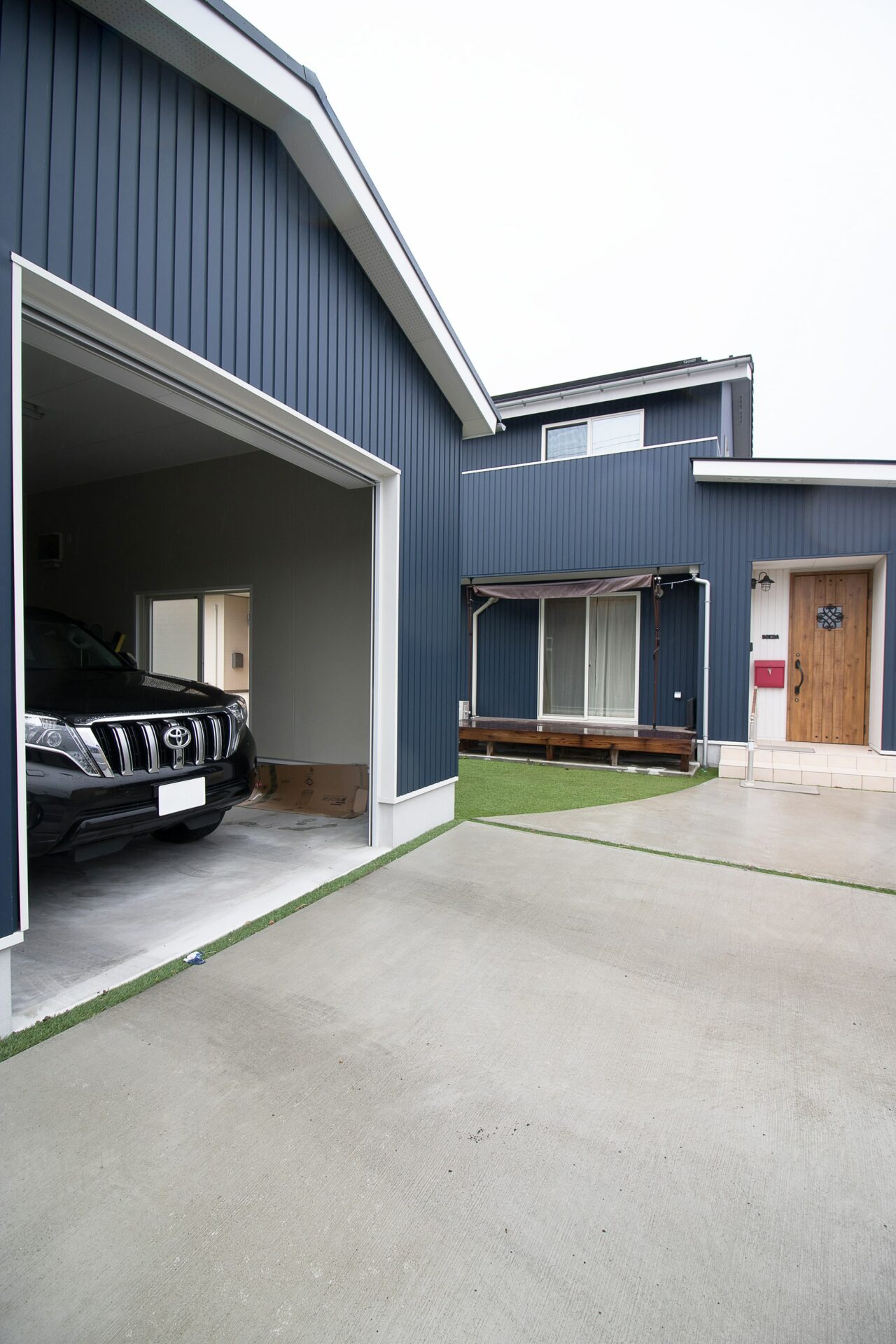 家づくりをはじめた当初から「ガレージ付きの家が建てたい」と強い希望を叶えたガレージ。ハウスメーカーでは高くて予算オーバーだったのも、無垢Storyさんでは予算内に建てられることができましたと話してくれました。 そんなガレージは住まいと統一したネイビーのガルバリウムでカッコいい仕上がり。注文住宅を建てる工務店だからこそ、雰囲気を統一できるのが魅力的です。 いつまでも木の香りが続くお住まいとなりました。