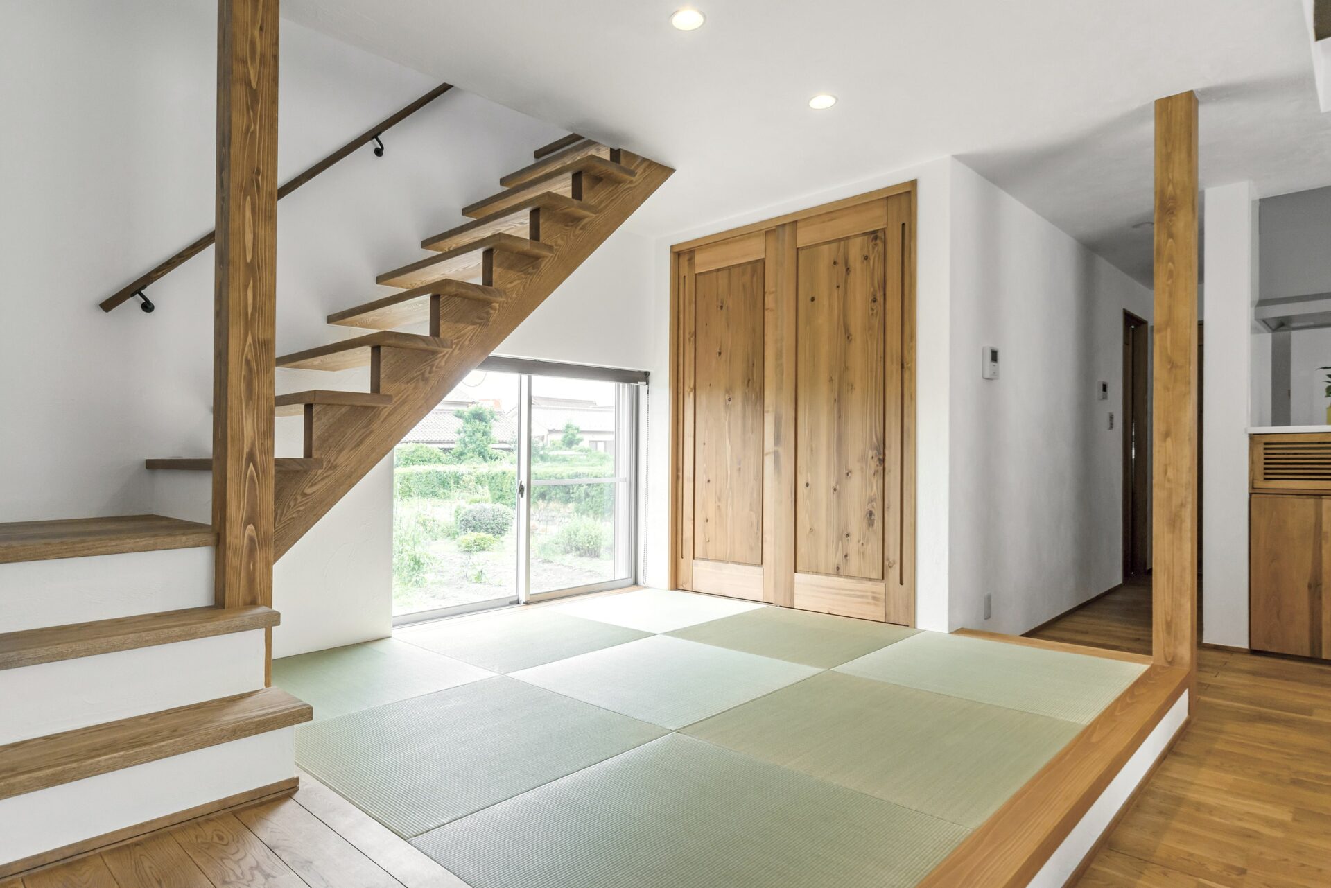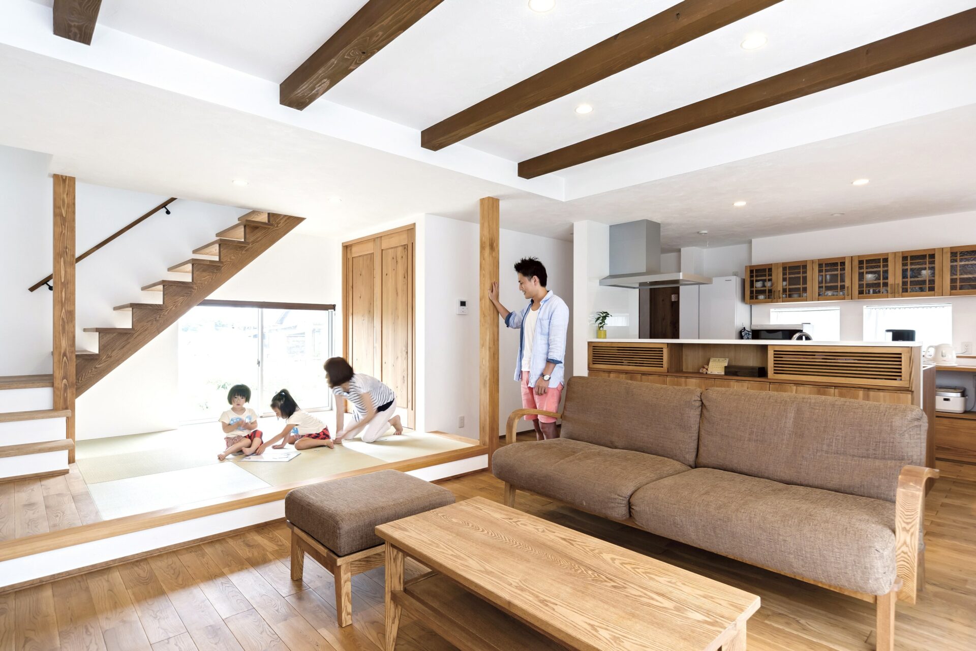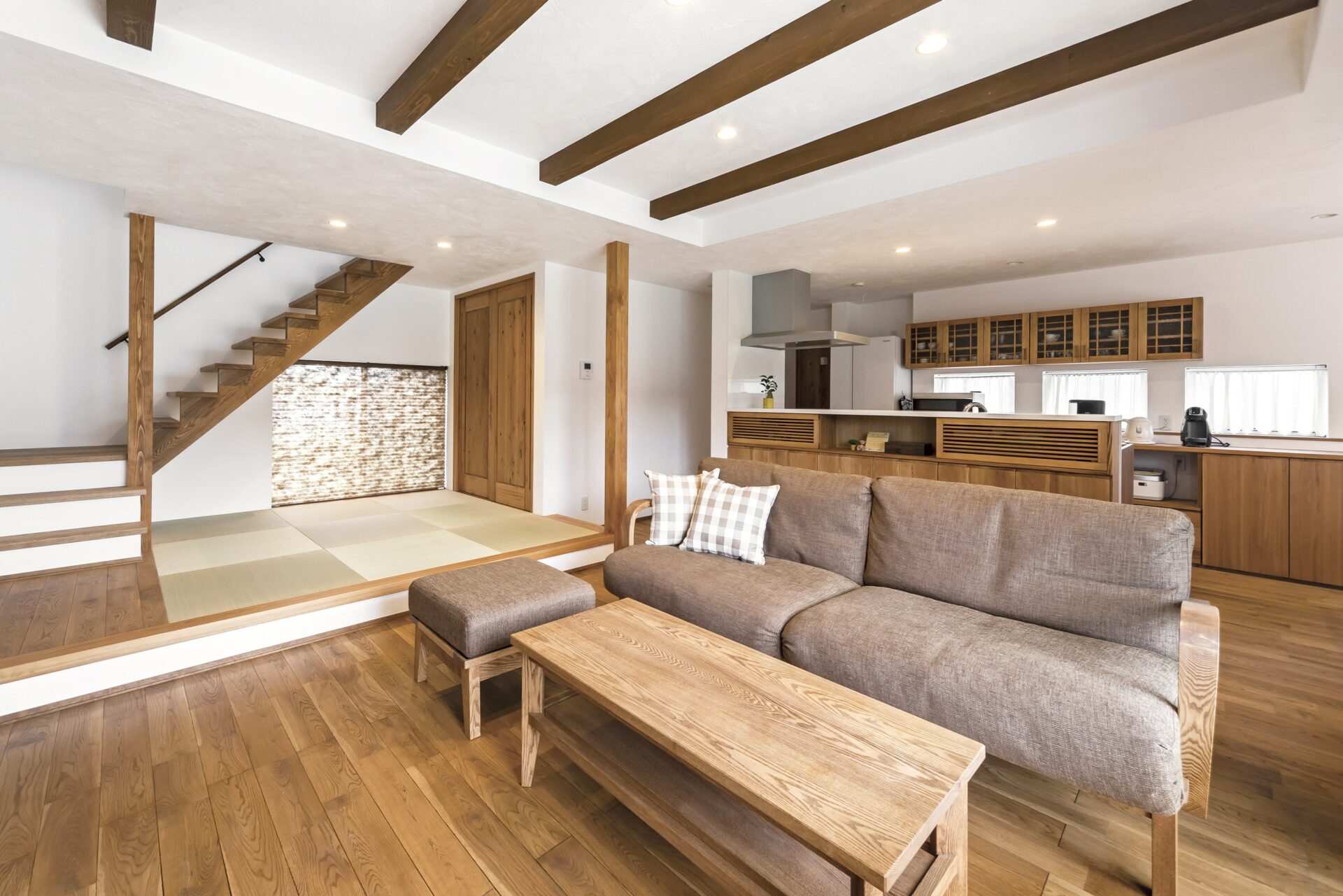 くつろぎの空間として小上がりの畳コーナーがあり、見渡しの良いキッチンもこだわりながらカフェのような統一感を実現。