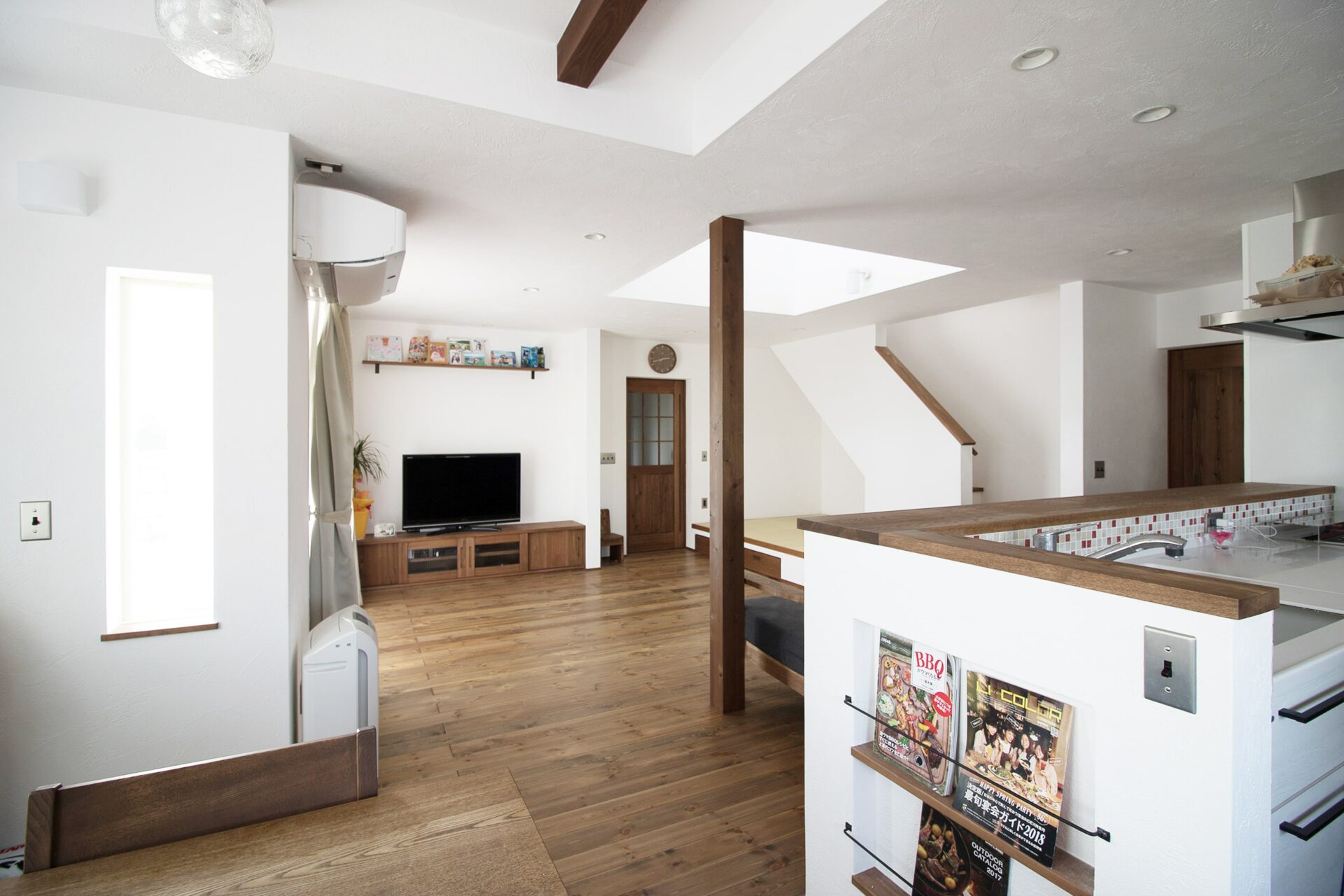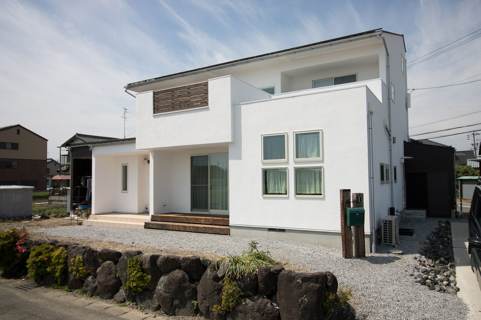 吹抜けとこだわり抜いた2.5階の間取り。H様の希望をすべて詰め込んだオシャレな二世帯住宅が岐阜県瑞穂市に完成しました。 漆喰と無垢材の自然素材で、爽やかな空気感…一番のこだわりはLDKの広さと2階の寝室です。