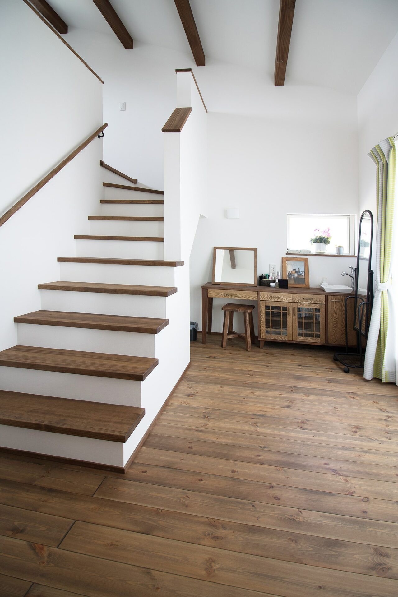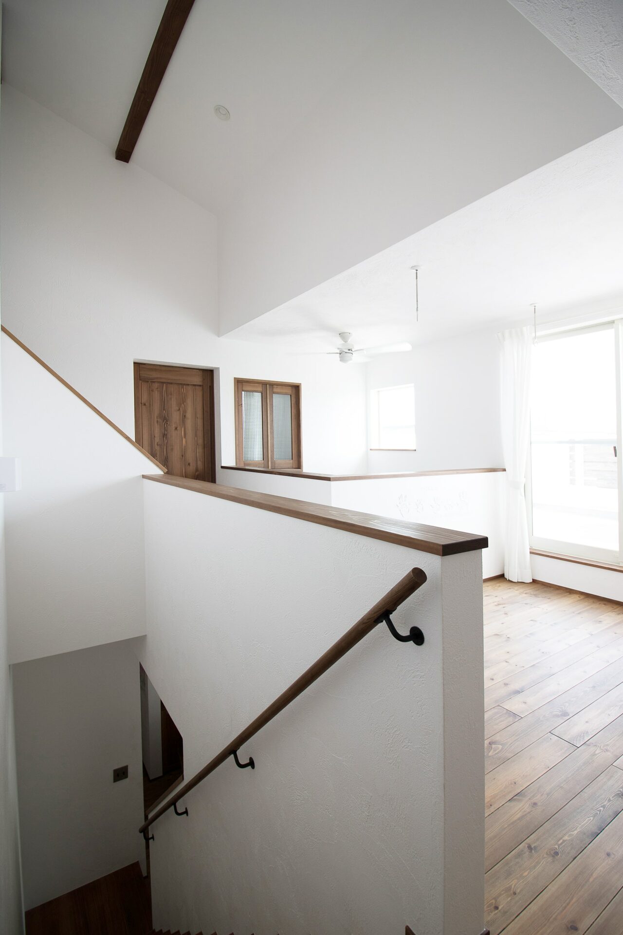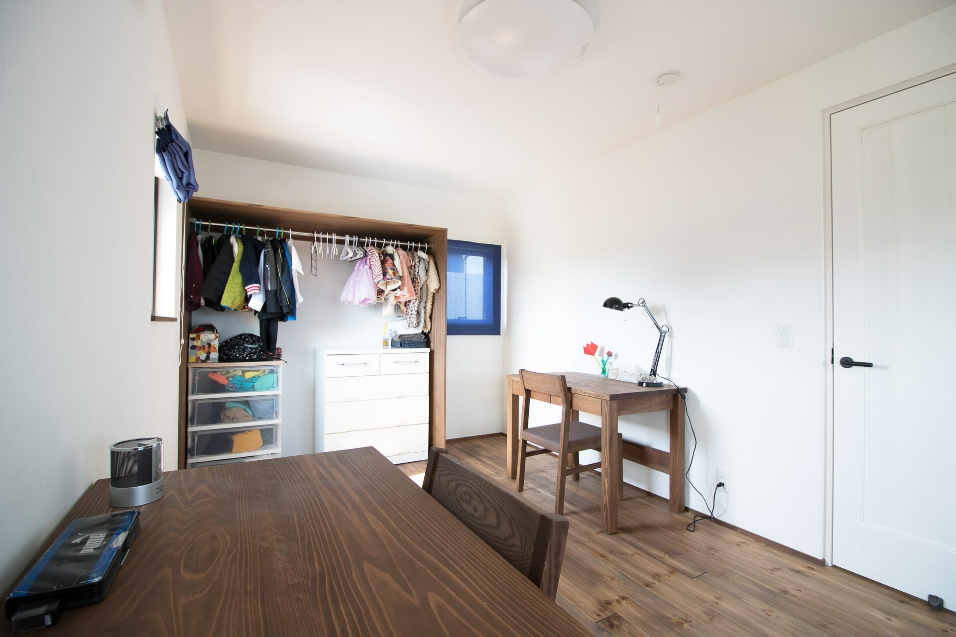 2階の寝室は勾配天井の空間を利用したロフトスペースに配置。朝起きて階段下の身支度部屋へすぐ降りていける動線がとても便利。また、縦空間を最大限に活用したウォークインクローゼットにも最短で移動できるので、忙しい朝には大助かり。家族の笑顔があふれるお住まいとなりました。