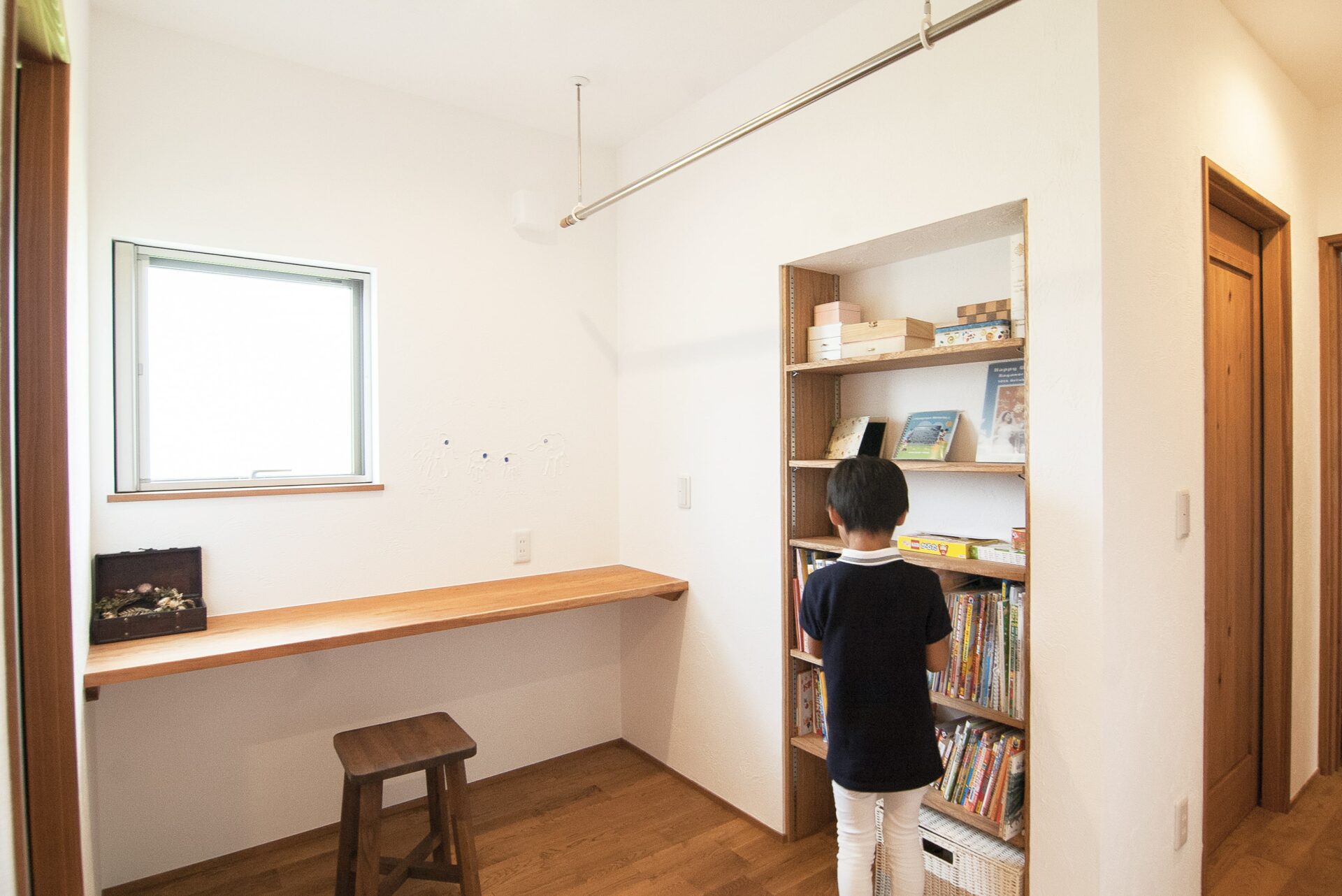 無垢のあたたかみが感じられるテーブルや棚。自社工房でオーダーにあわせてつくってくれるので、和と洋のミックススタイルでも、家全体に統一感がでます。