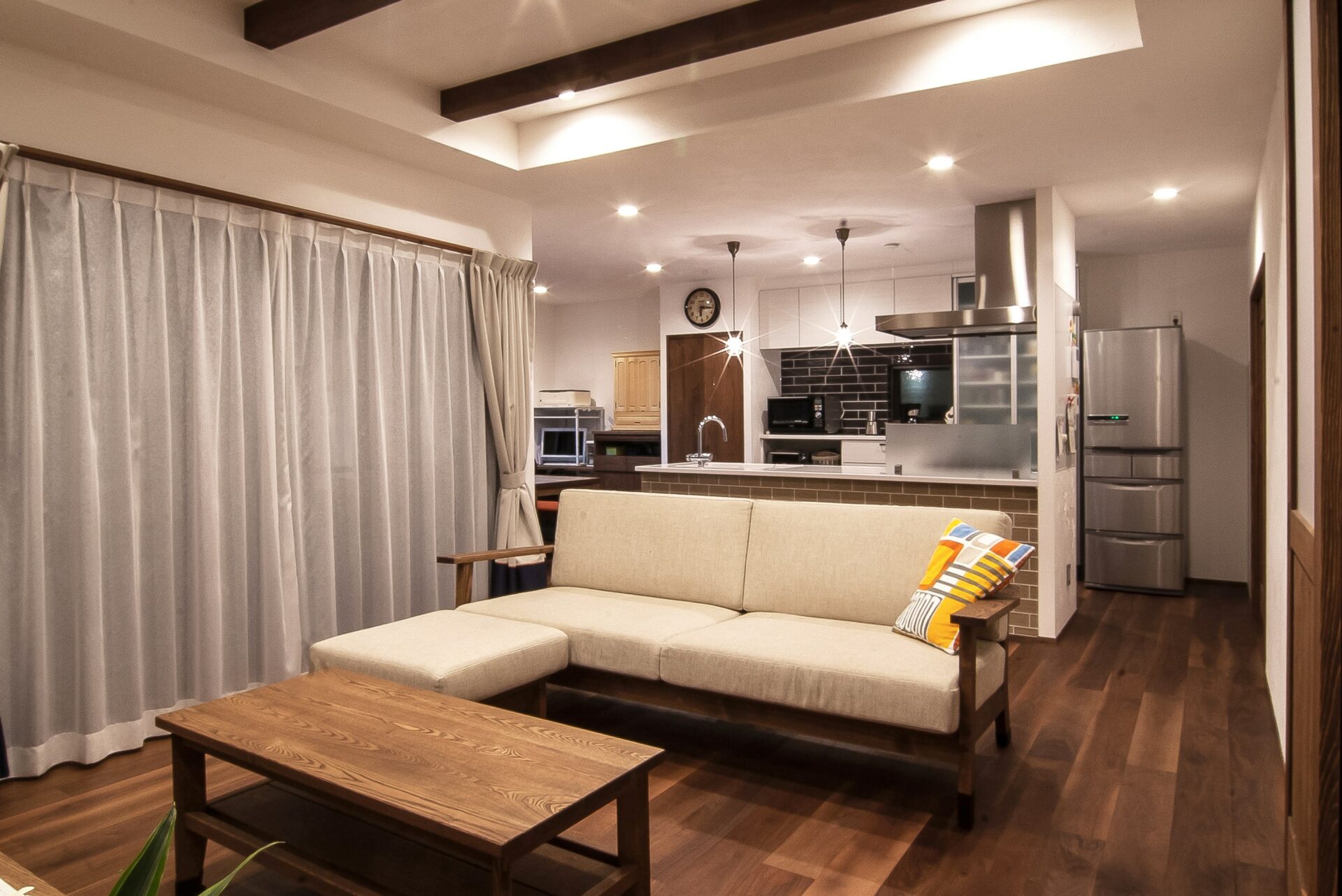 「好きな海外ドラマに出てくる家の雰囲気を取り入れながらも、いわゆる欧米風に特化せず、カフェの様にくつろげる居心地のよさや、生活のしやすさに注力した家を依頼しました。」と各務原市に建築のH様。 そこに、バーベキューを楽しむテラスや多彩なタイル等、H様の大好きな米国のヴィンテージな雰囲気をプラス。また、同居しているお母様の為に玄関スロープを設けたり、お母様の部屋にトイレを設置する下準備をしたり、将来を見越した設計など、いつまでも快適に暮らせそう。 カフェへ遊びに行くように友人が集まれる居心地のいいお住まいが完成しました。