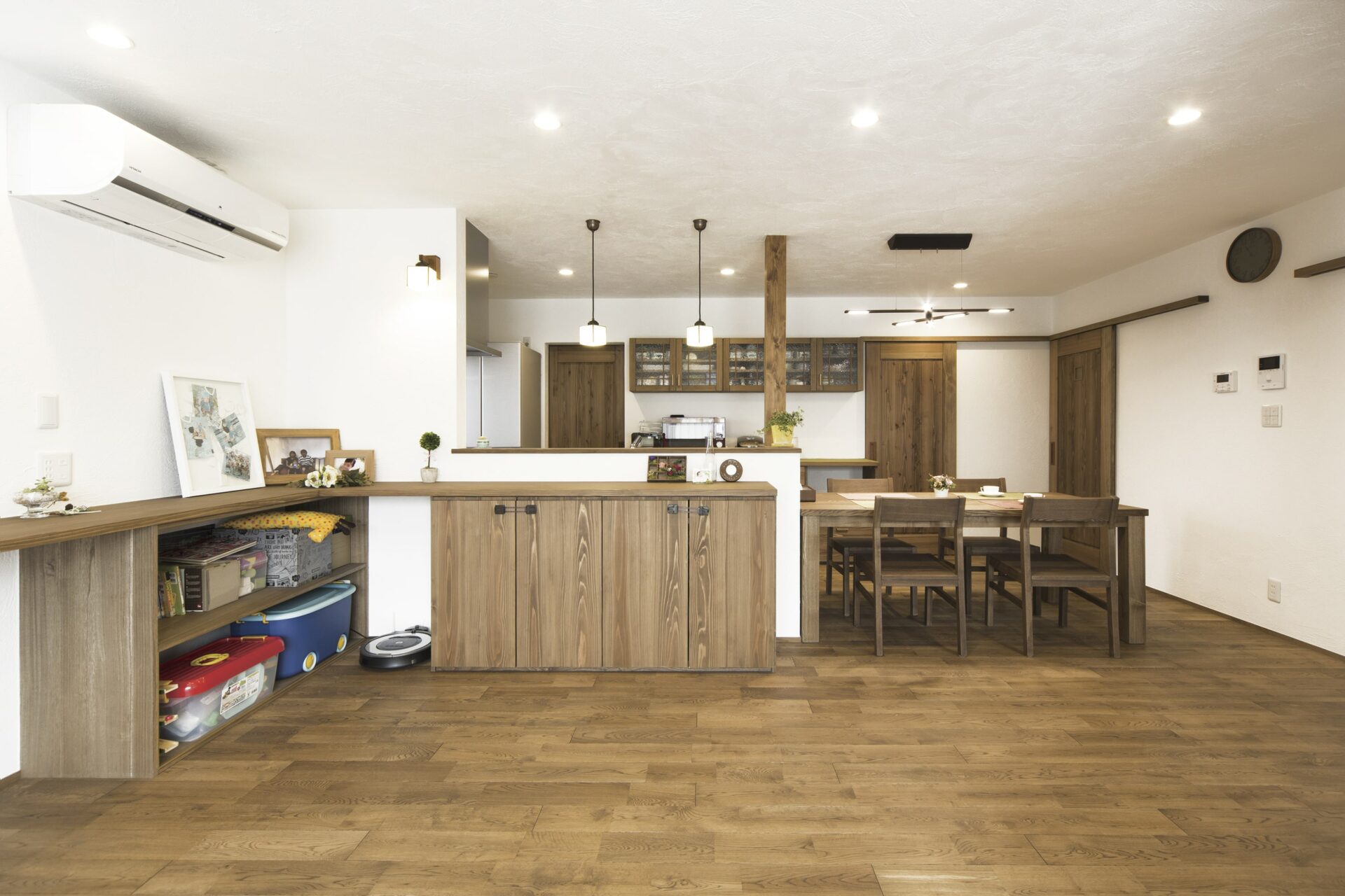 「どことなく和の雰囲気を残すカフェのようなオシャレな空間に一目惚れしました」と語るG様夫妻のお住まいは「子ども目線の家」。子供の目の高さにおもちゃを片づけられる収納を設けました。
