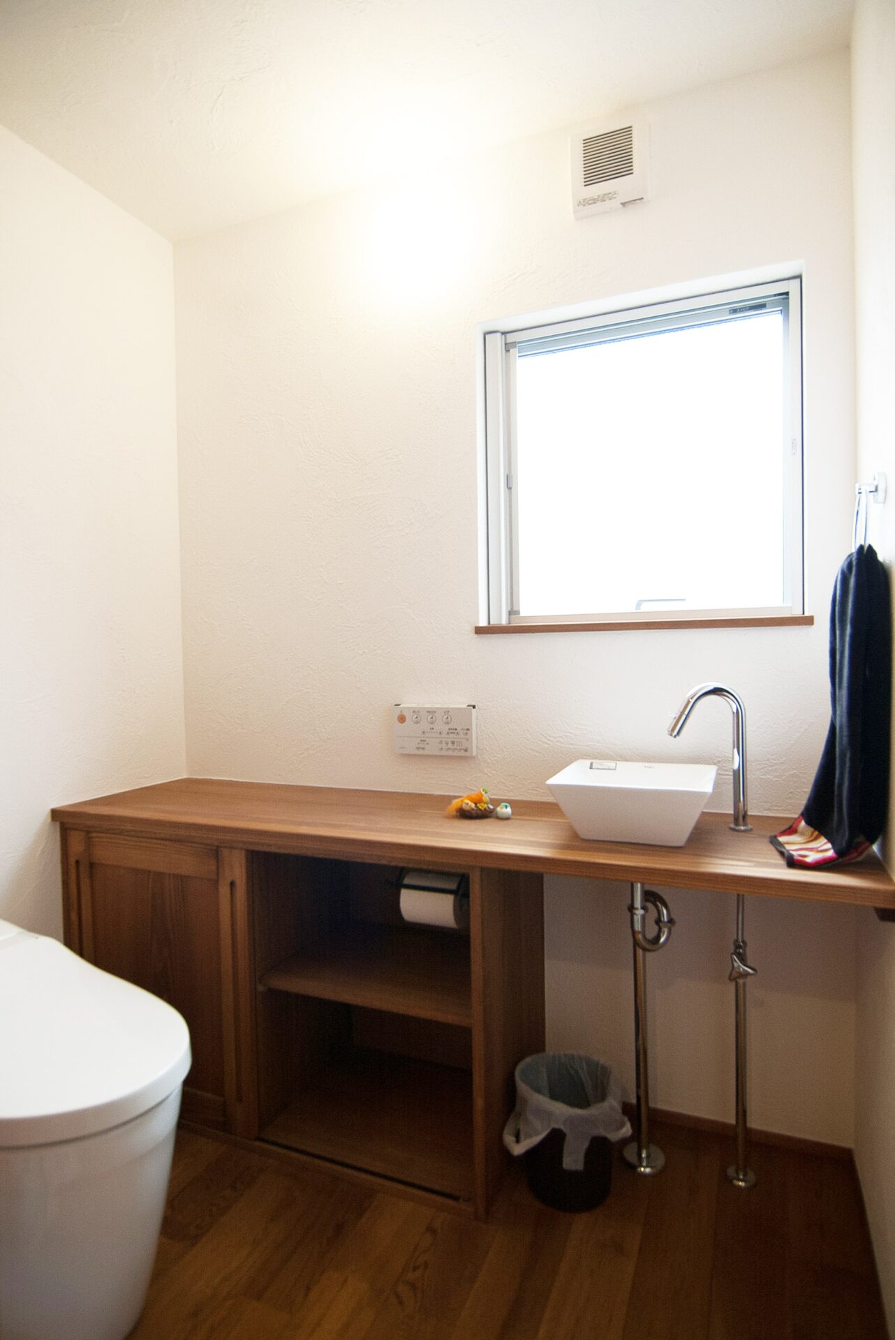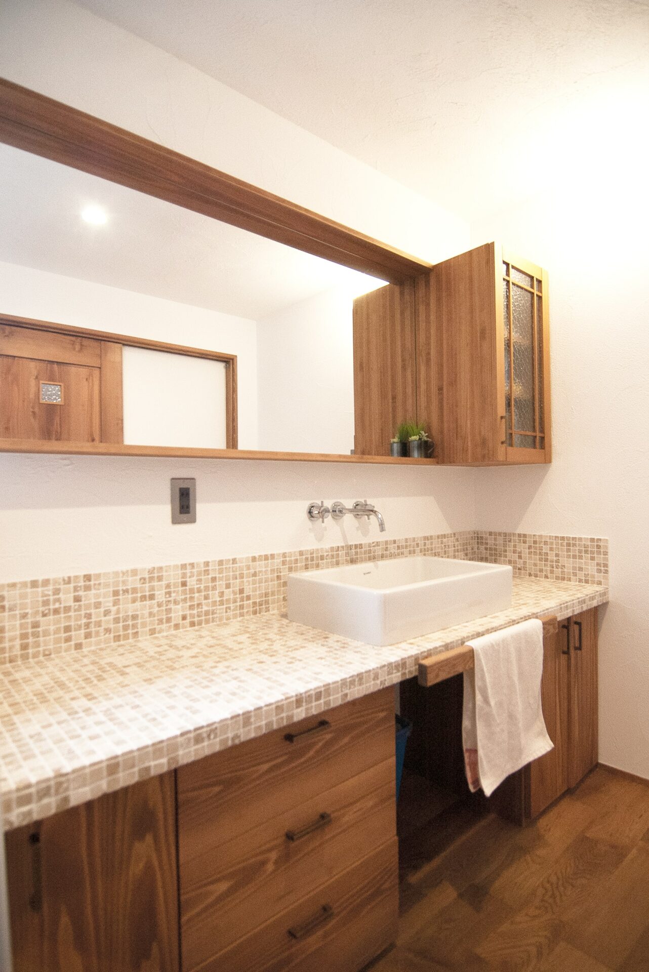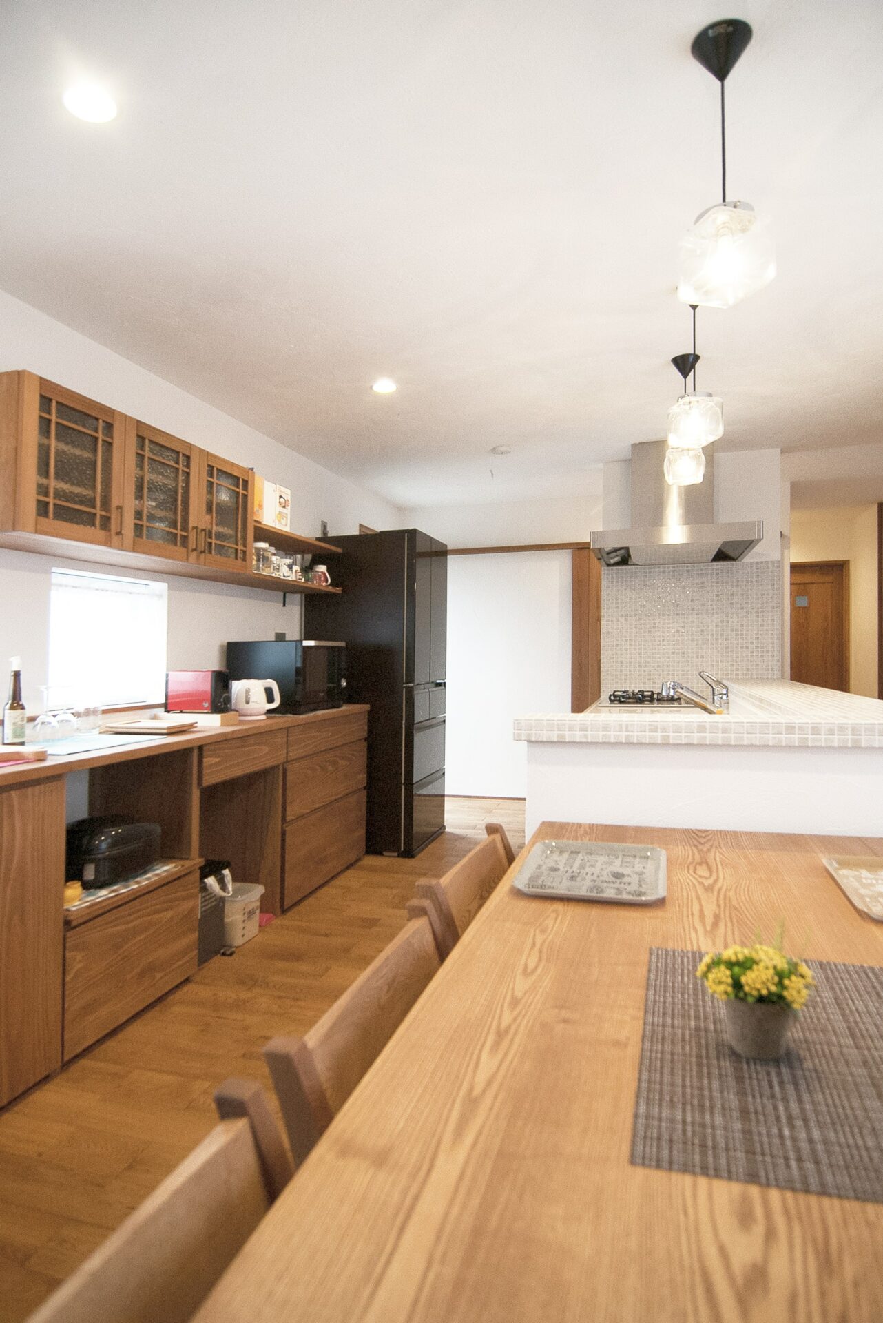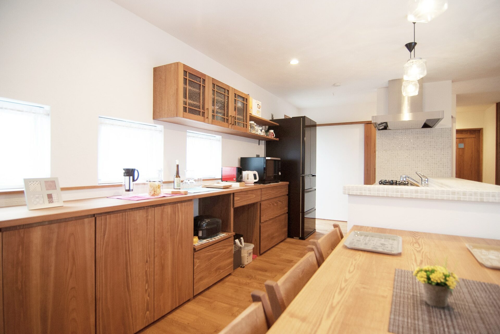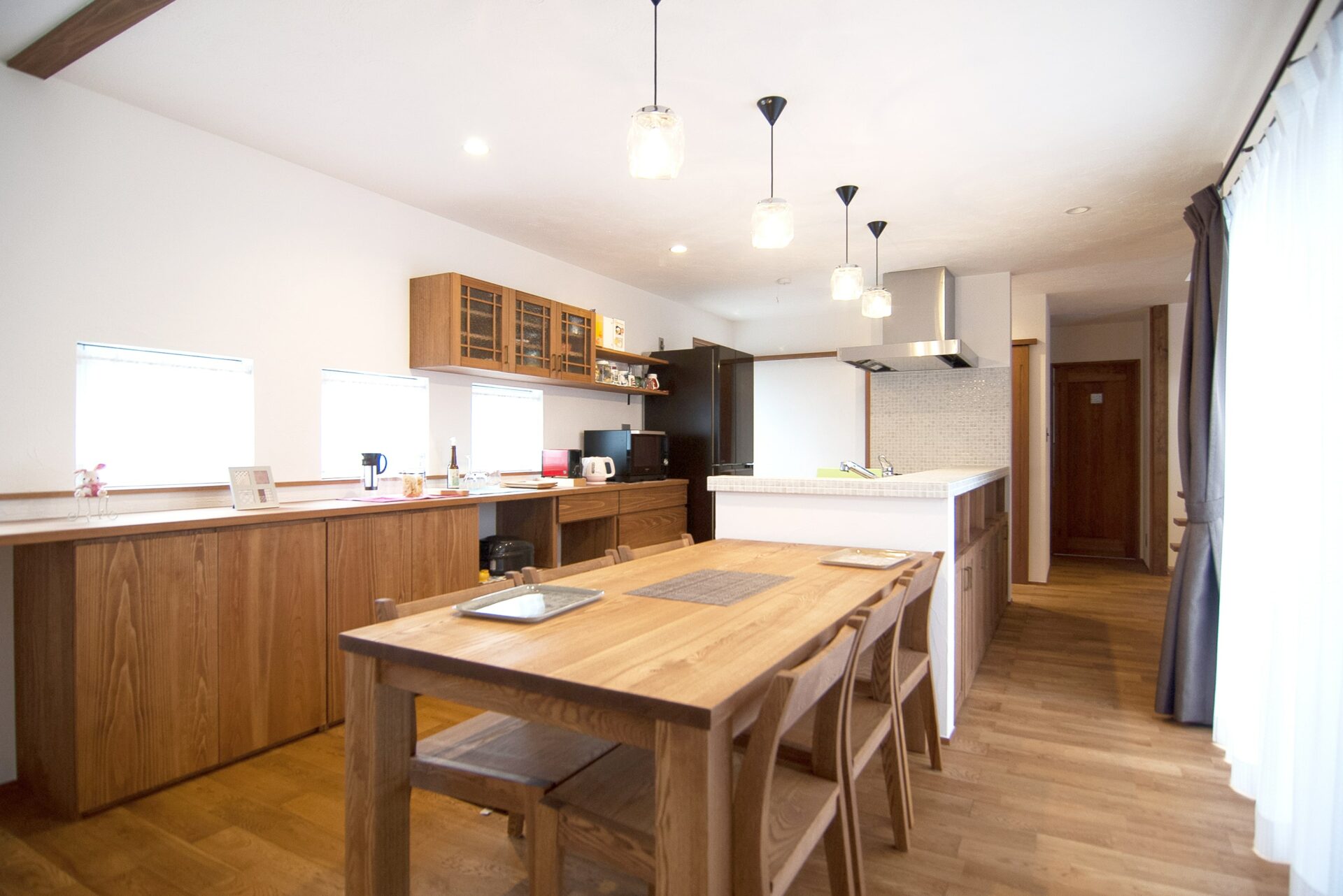 落ち着きのある茶をベースにしたインテリアです。家具や建具は無垢ストーリーのオリジナルです。