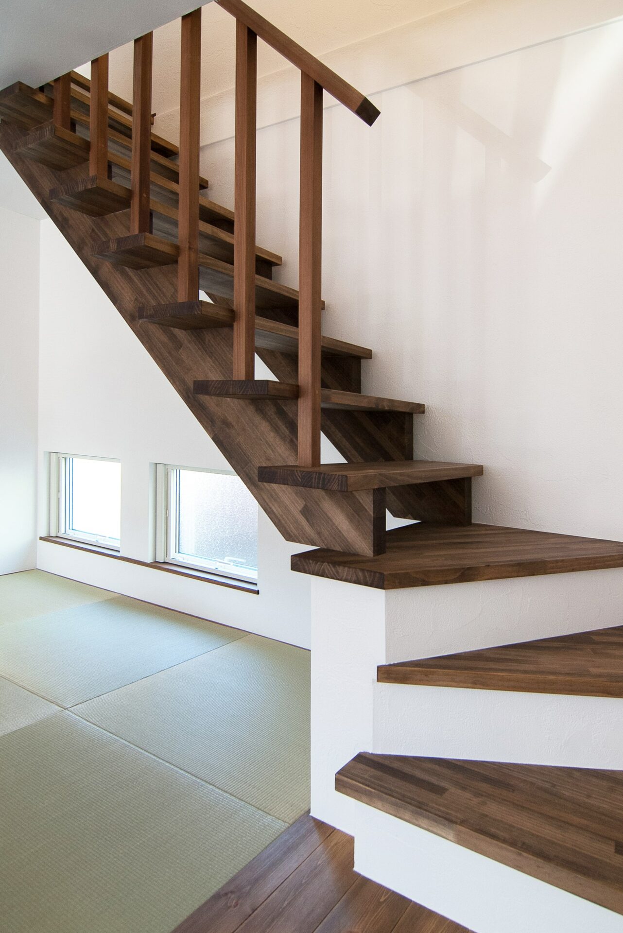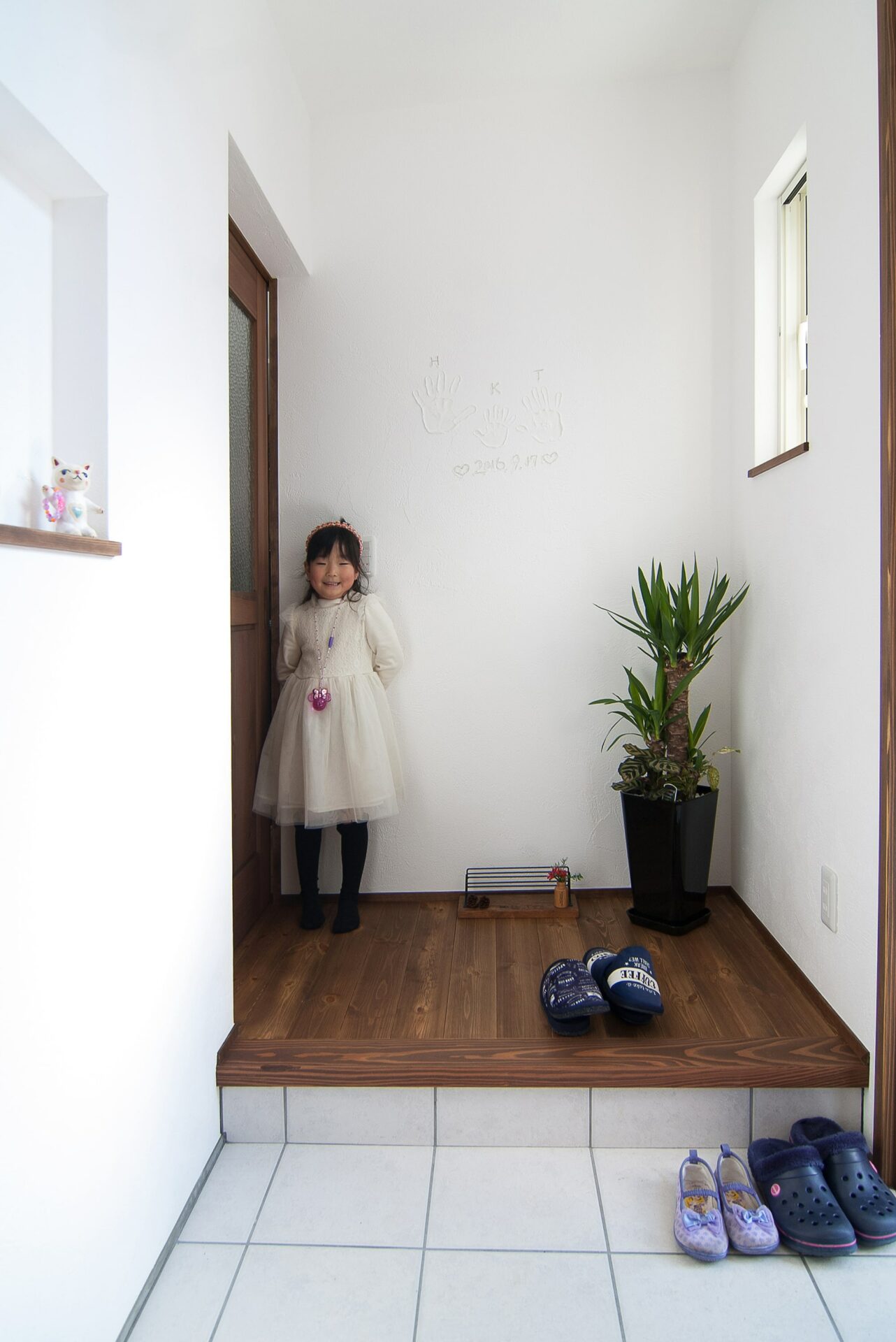 洗濯物干しが大好きな奥様のために二階の廊下を広くして漆喰壁にしたことで、雨の日に部屋干ししても部屋干し特有のニオイがまったく気になりません。インテリアもデザインも思いのままのお住まいとなりました。