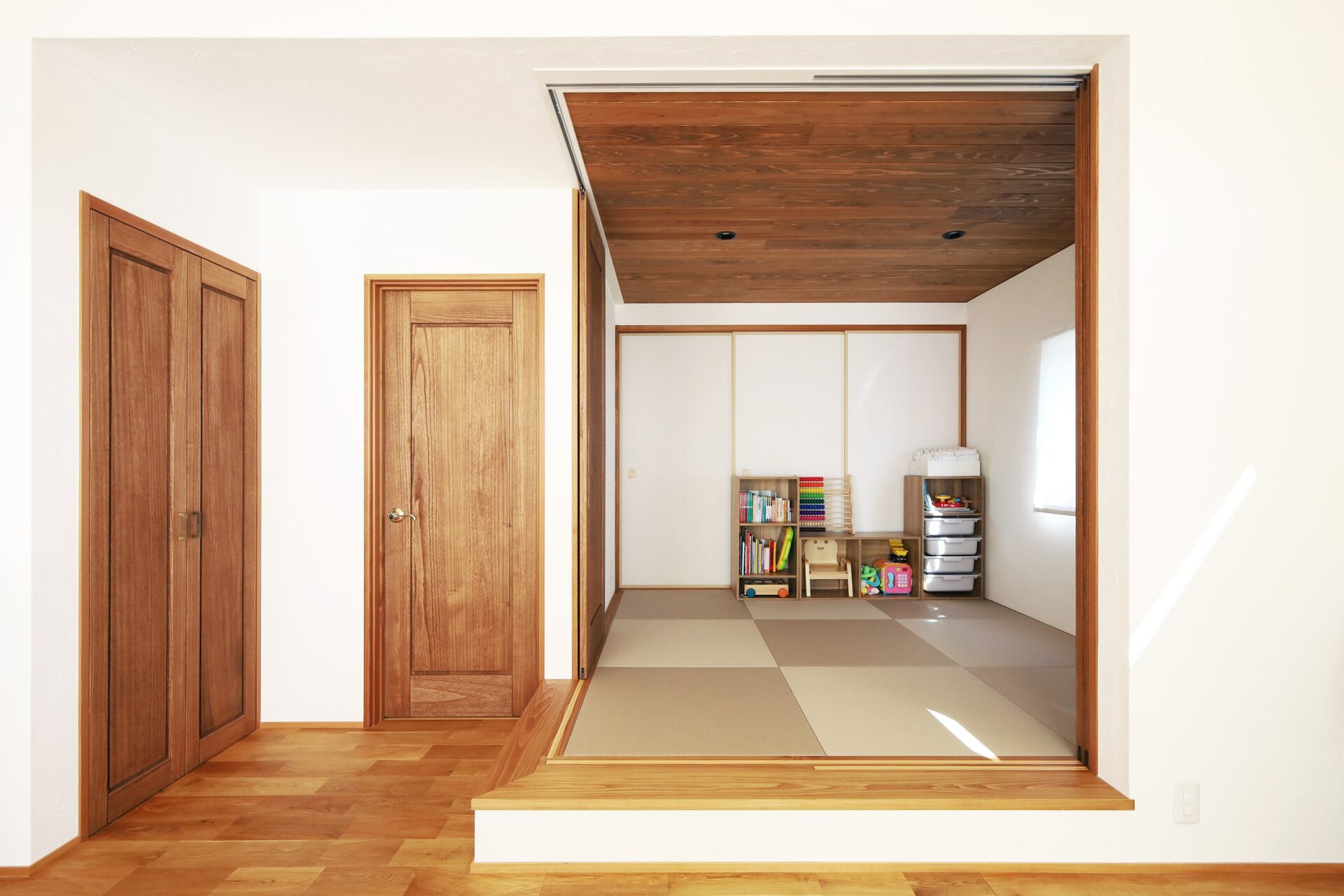 リビングの横の和室は扉を締め切ると個室としても使えます。