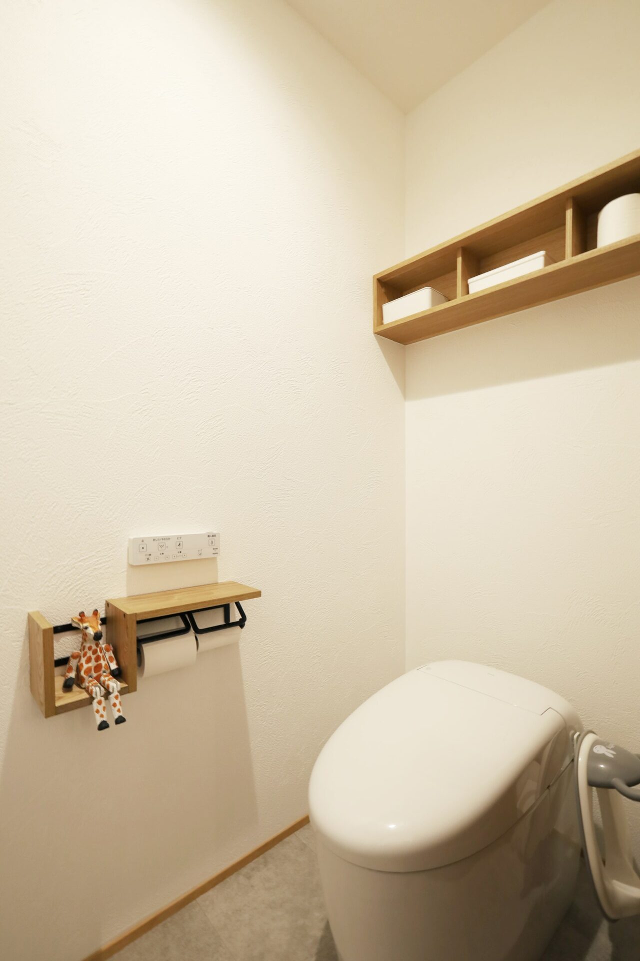 トイレの壁まで漆喰を使用。漆喰は消臭効果もあるので臭いも気になりません。