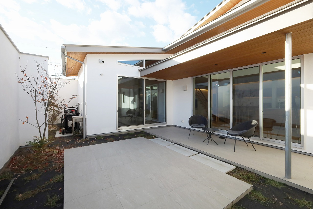 リビングの掃き出し窓を開けると大きなプライベートのインナーテラスがあります。お子さまと遊んだり、BBQをしたりと大活躍しそうですね^^庇を長めに出すことで、中へ入る紫外線を遮ったり、雨が降った時でも窓を開けておくことができます。