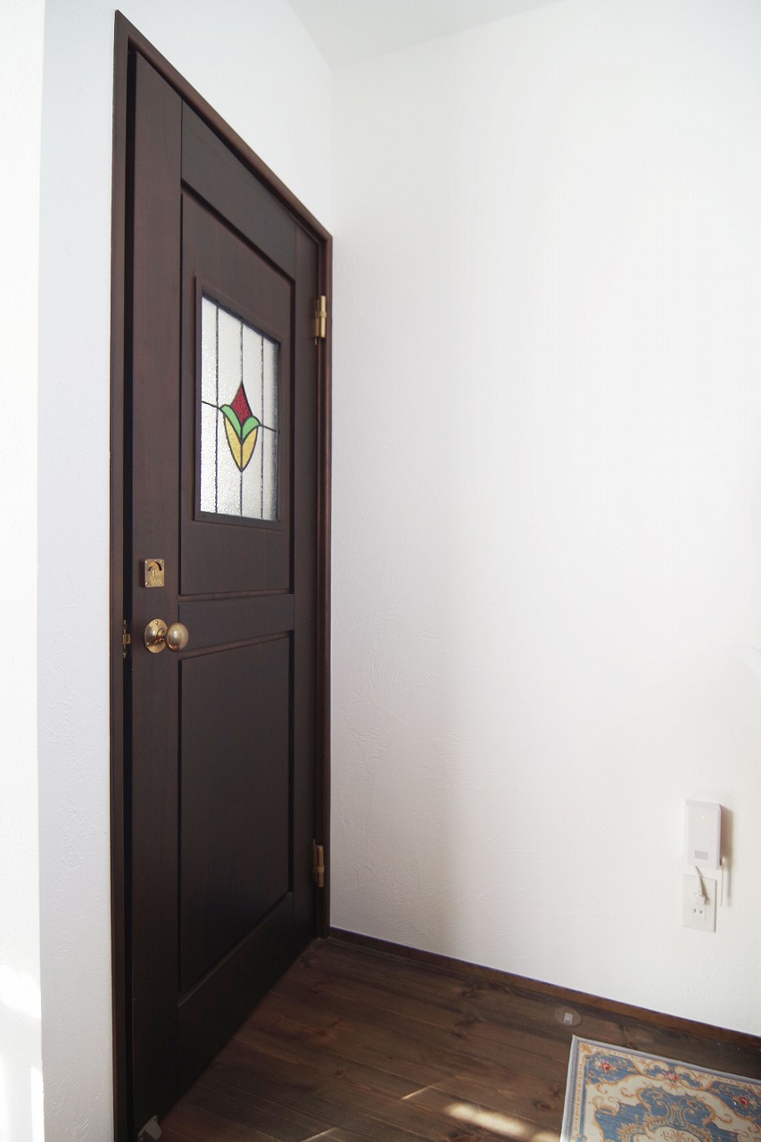 お客様支給のステンドグラスをはめ込んだオーダーメイドの建具です。
