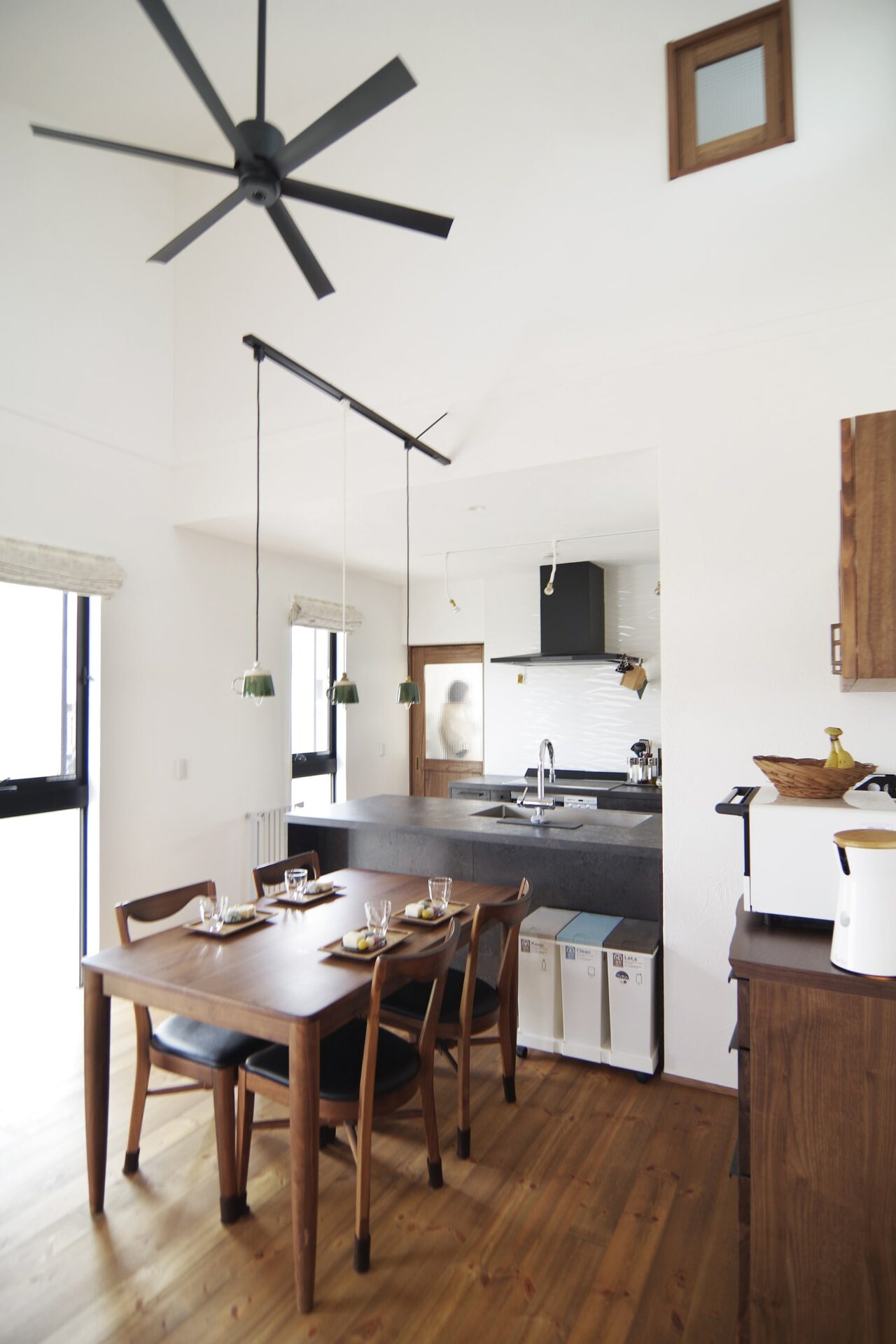 ダイニングは吹き抜けになっており、空間に解放感とメリハリを持たせます。