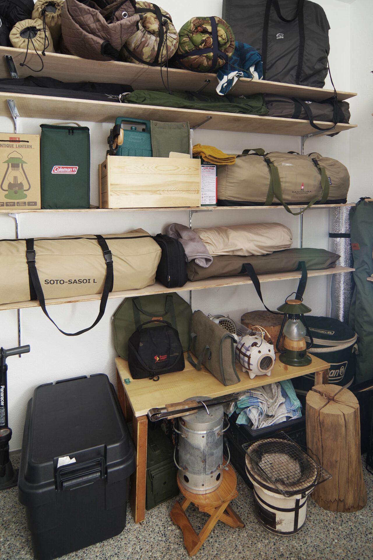 玄関収納の中は趣味のキャンプ道具でいっぱいです^^