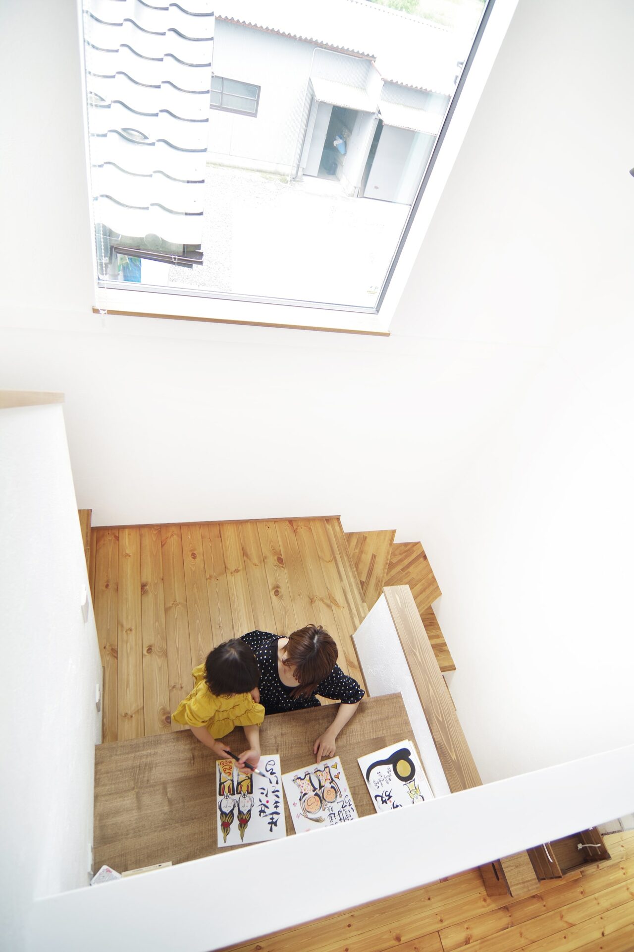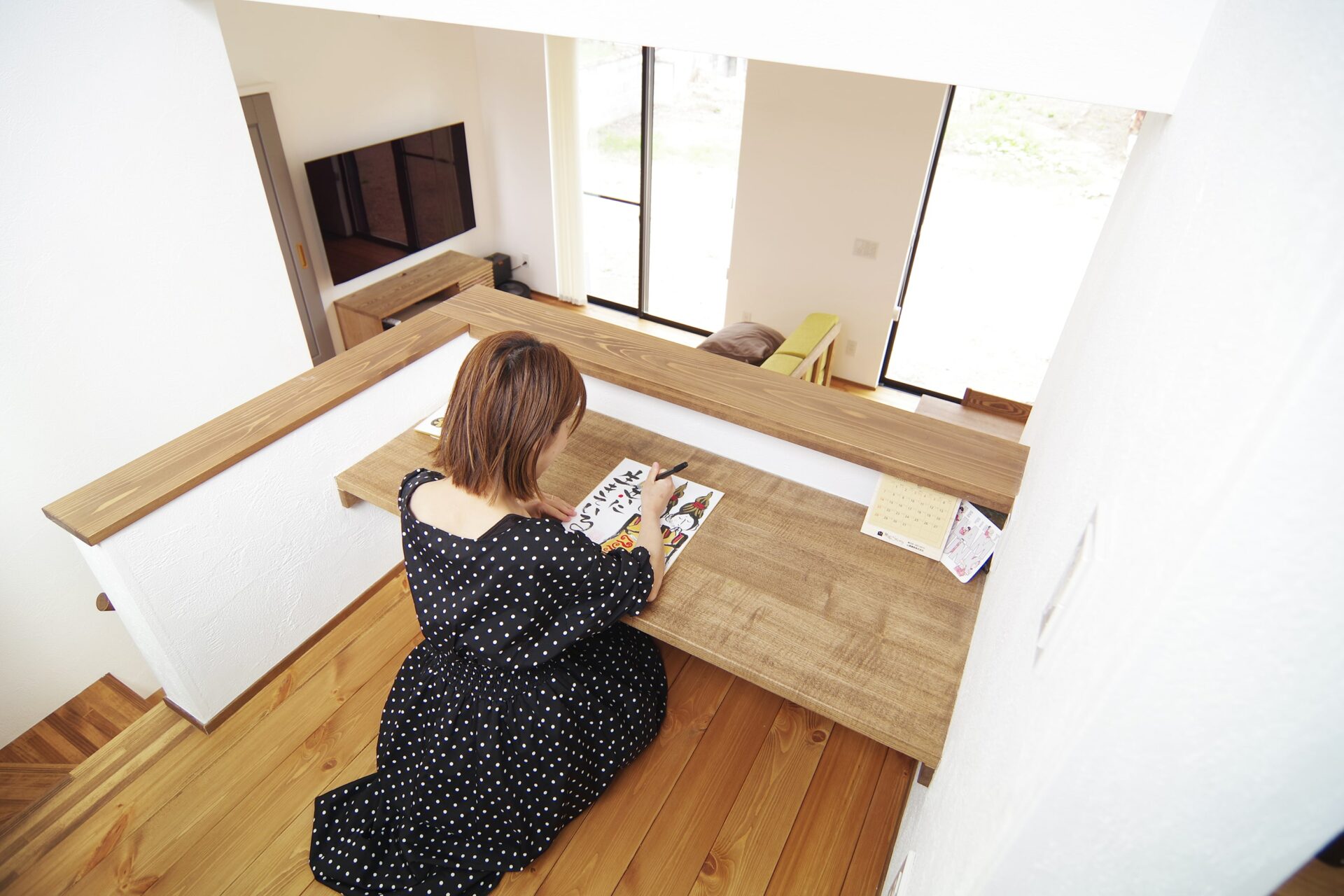 階段途中のスキップフロア。奥様の趣味のスペースに。リビングを見渡せます。