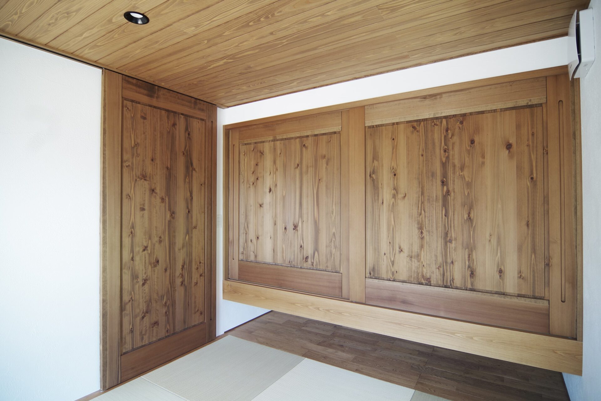 リビング横の和室。杉材の木目が高級感を演出しています。